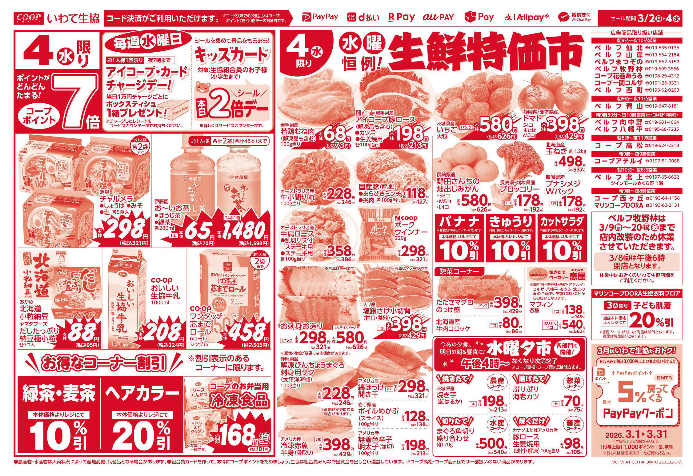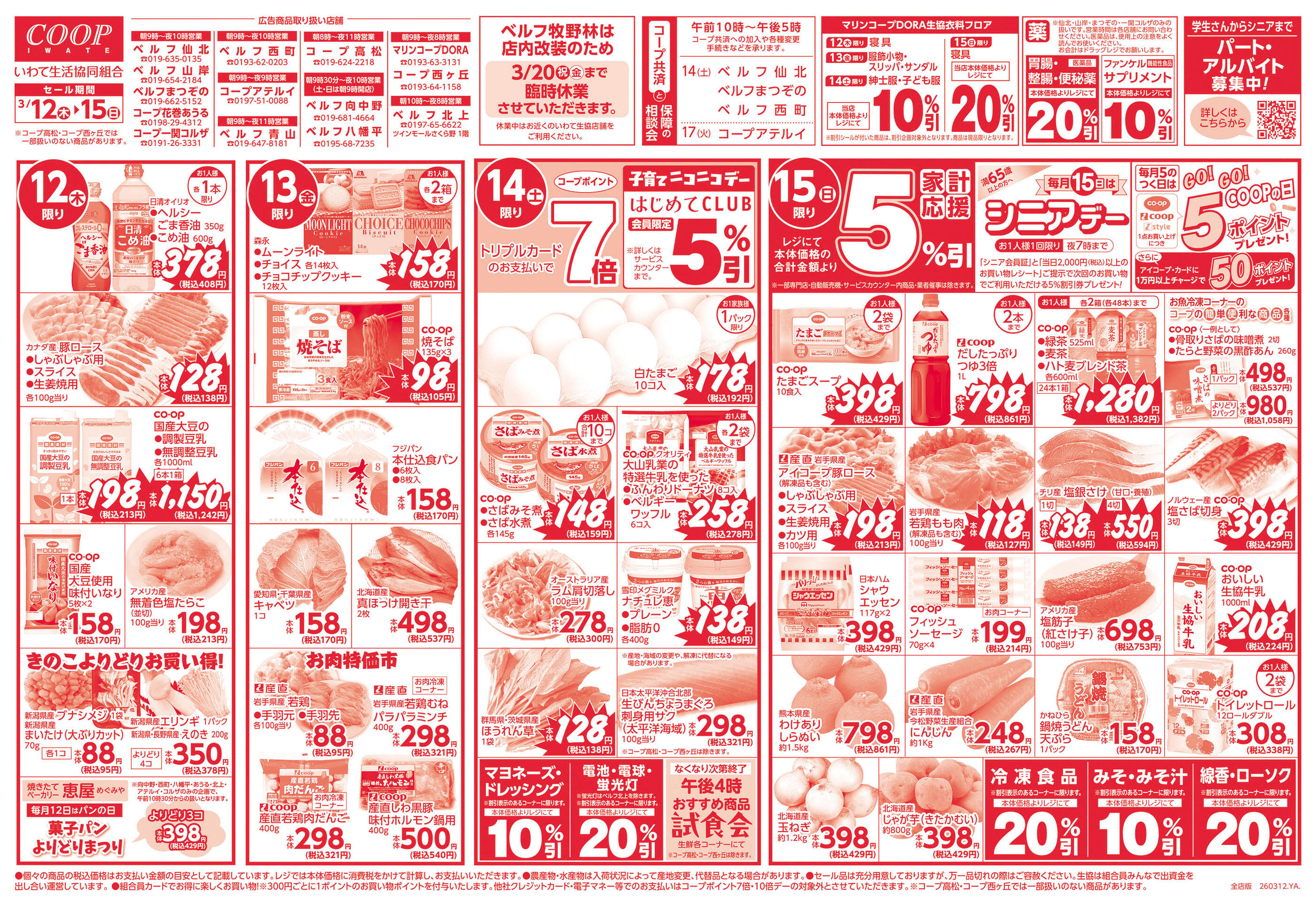 いわて生協 ベルフ山岸今週のチラシ(2026年3月9日〜3月15日)