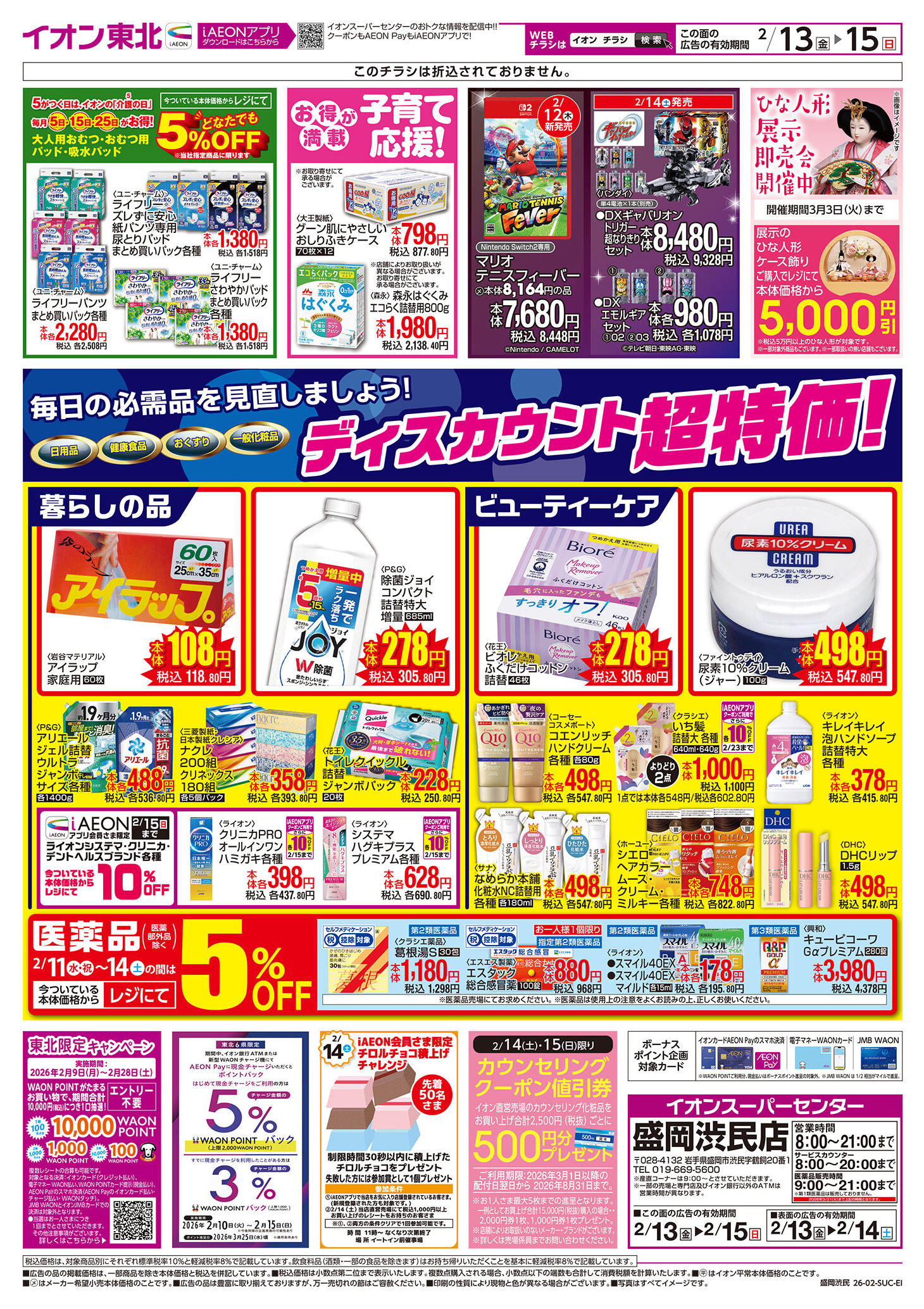 イオンスーパーセンター盛岡渋民店今週のチラシ(2026年2月9日〜2月15日)