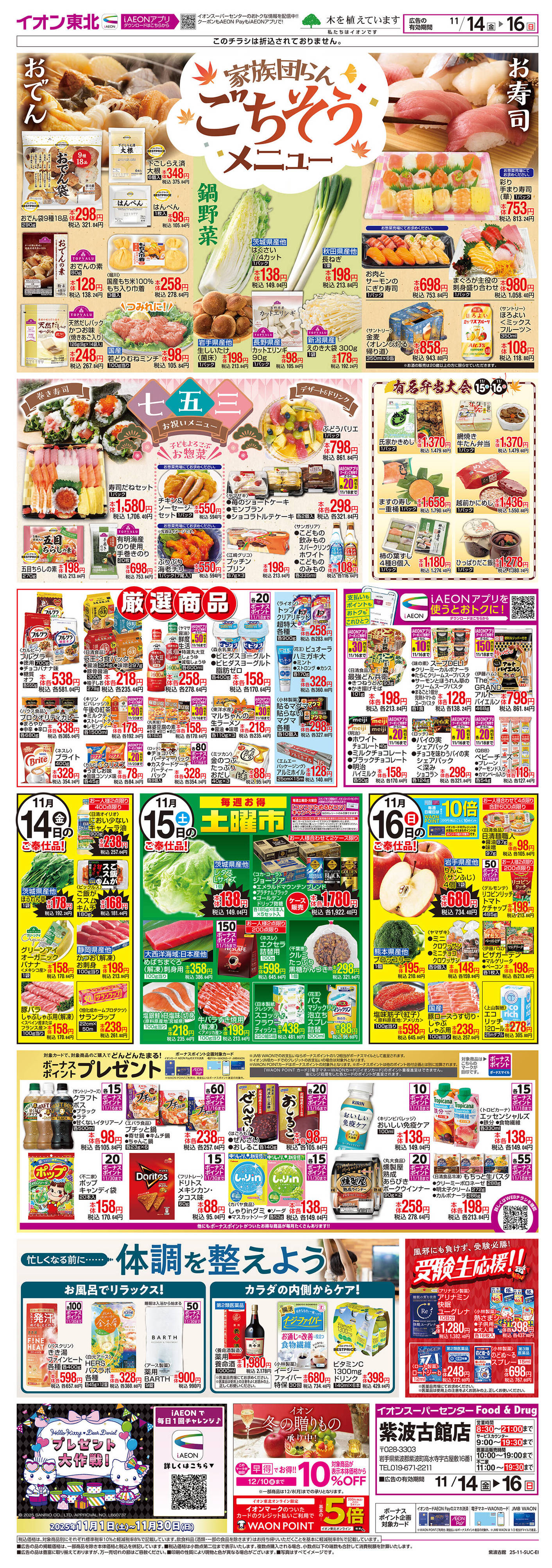 イオンスーパーセンター紫波古館店今週のチラシ(2025年11月10日〜11月16日)