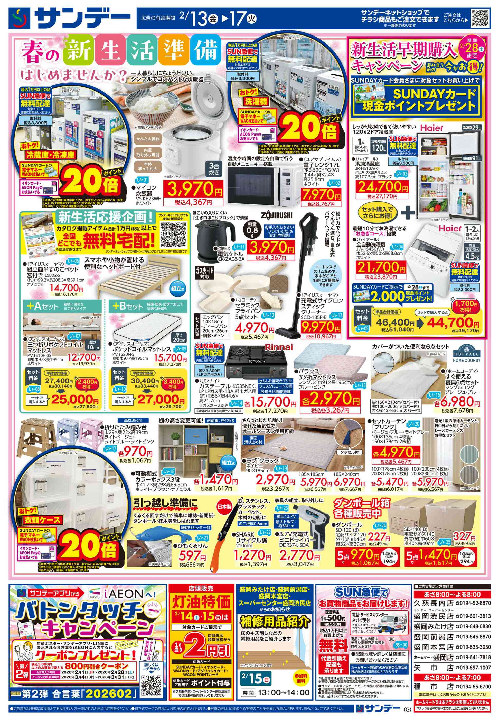 サンデー矢巾店今週のチラシ(2026年2月9日〜2月15日)
