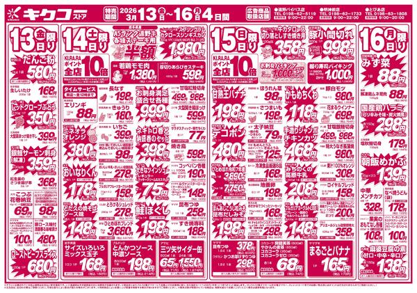 特売やセール情報など最新のチラシを掲載中。(13種類、13枚のチラシを掲載しています)