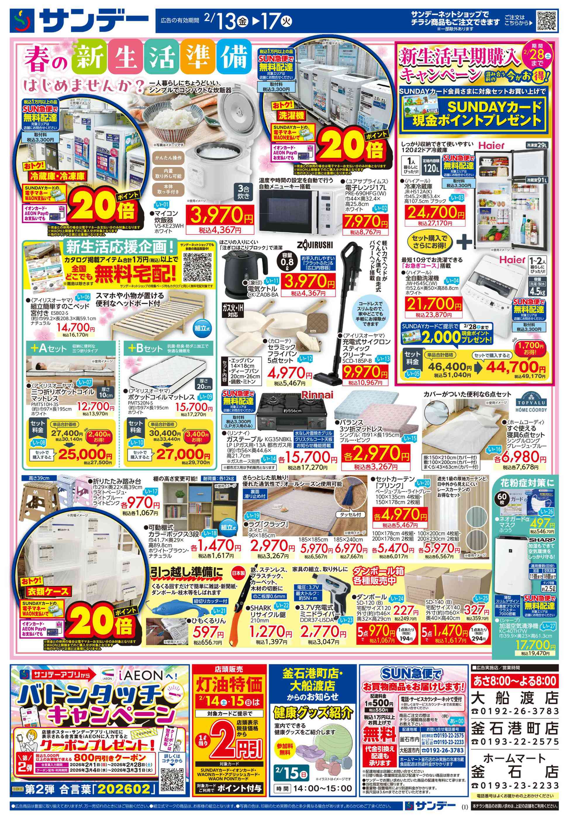 サンデー釜石店今週のチラシ(2026年2月9日〜2月15日)