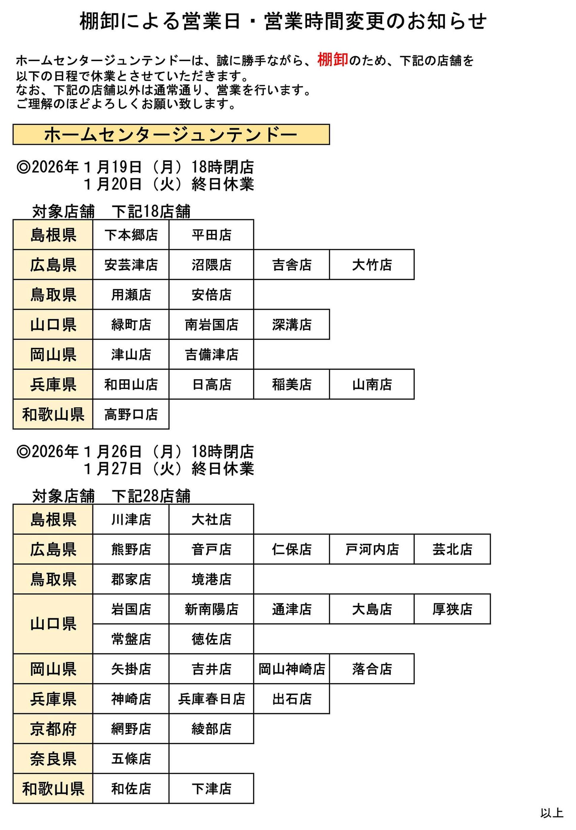 ジュンテンドー平田店今週のチラシ(2026年1月19日〜1月25日)