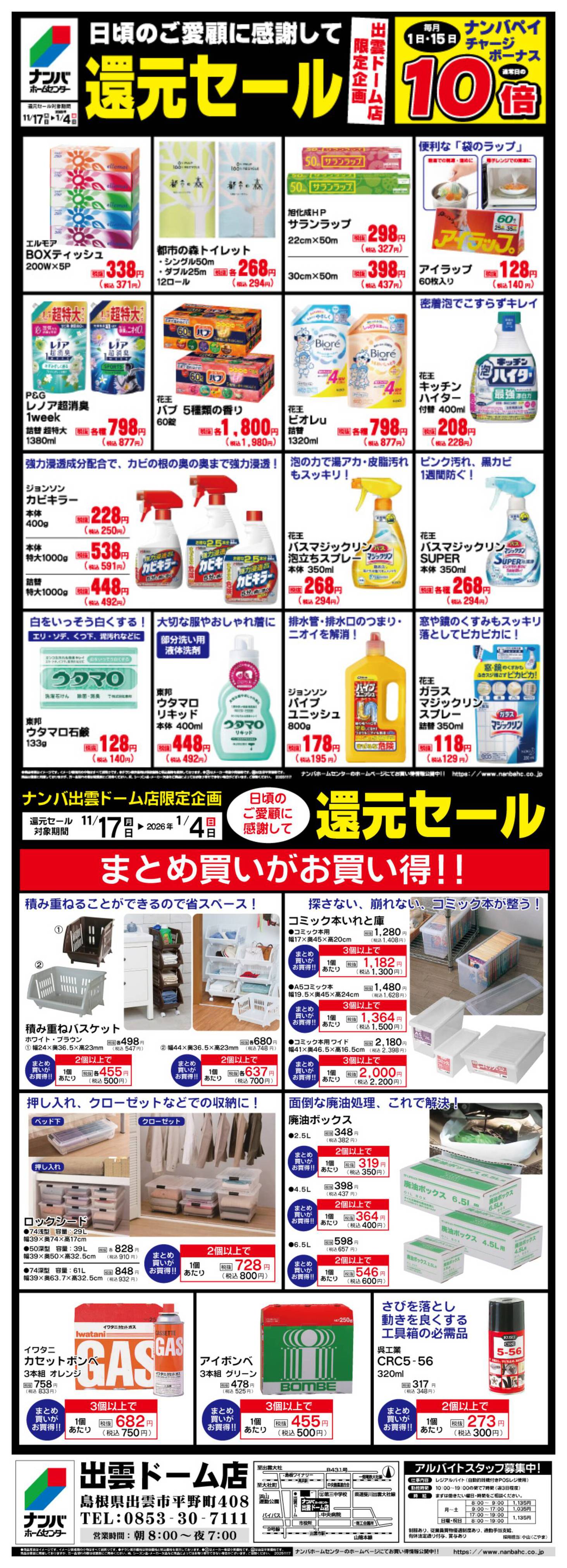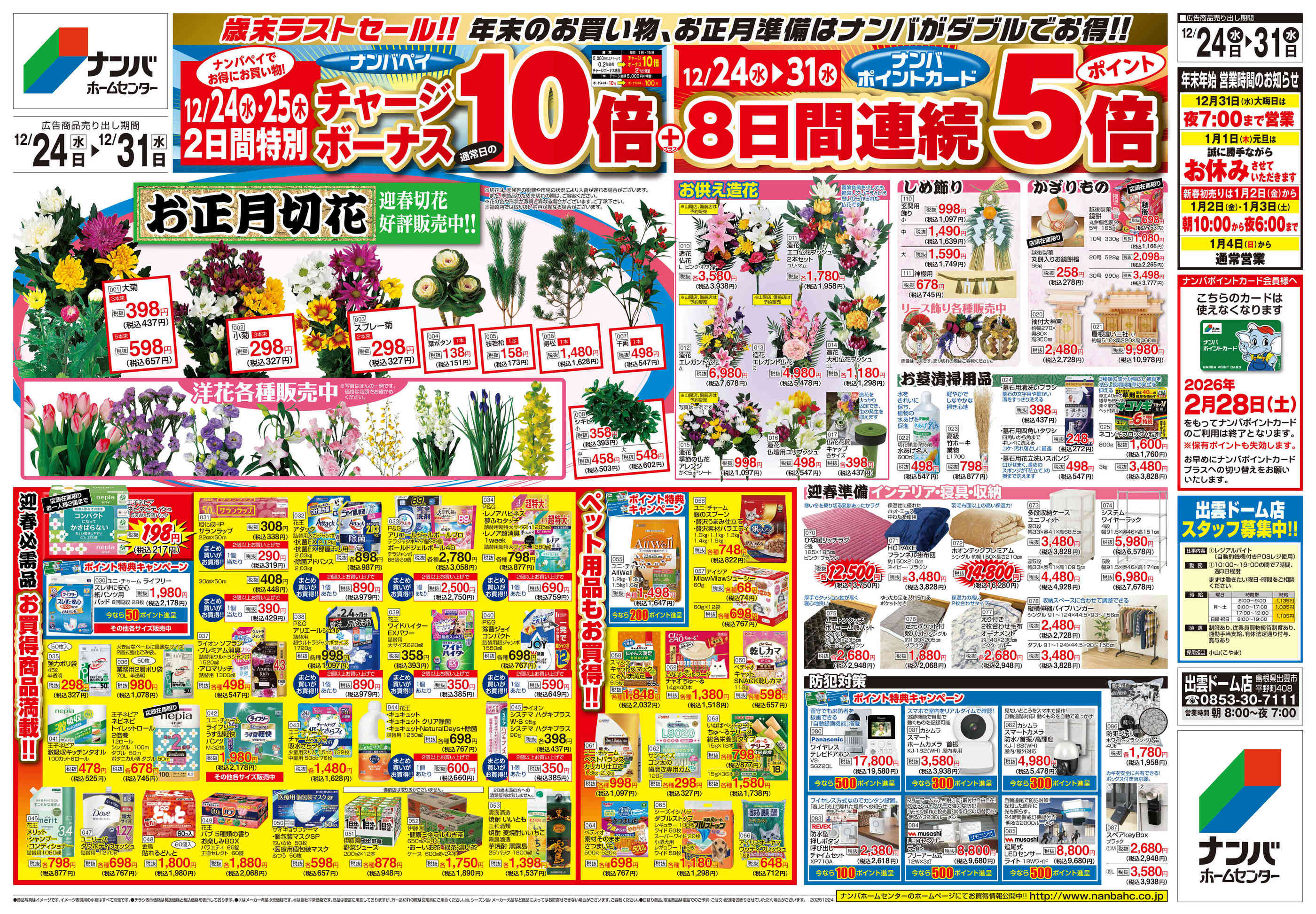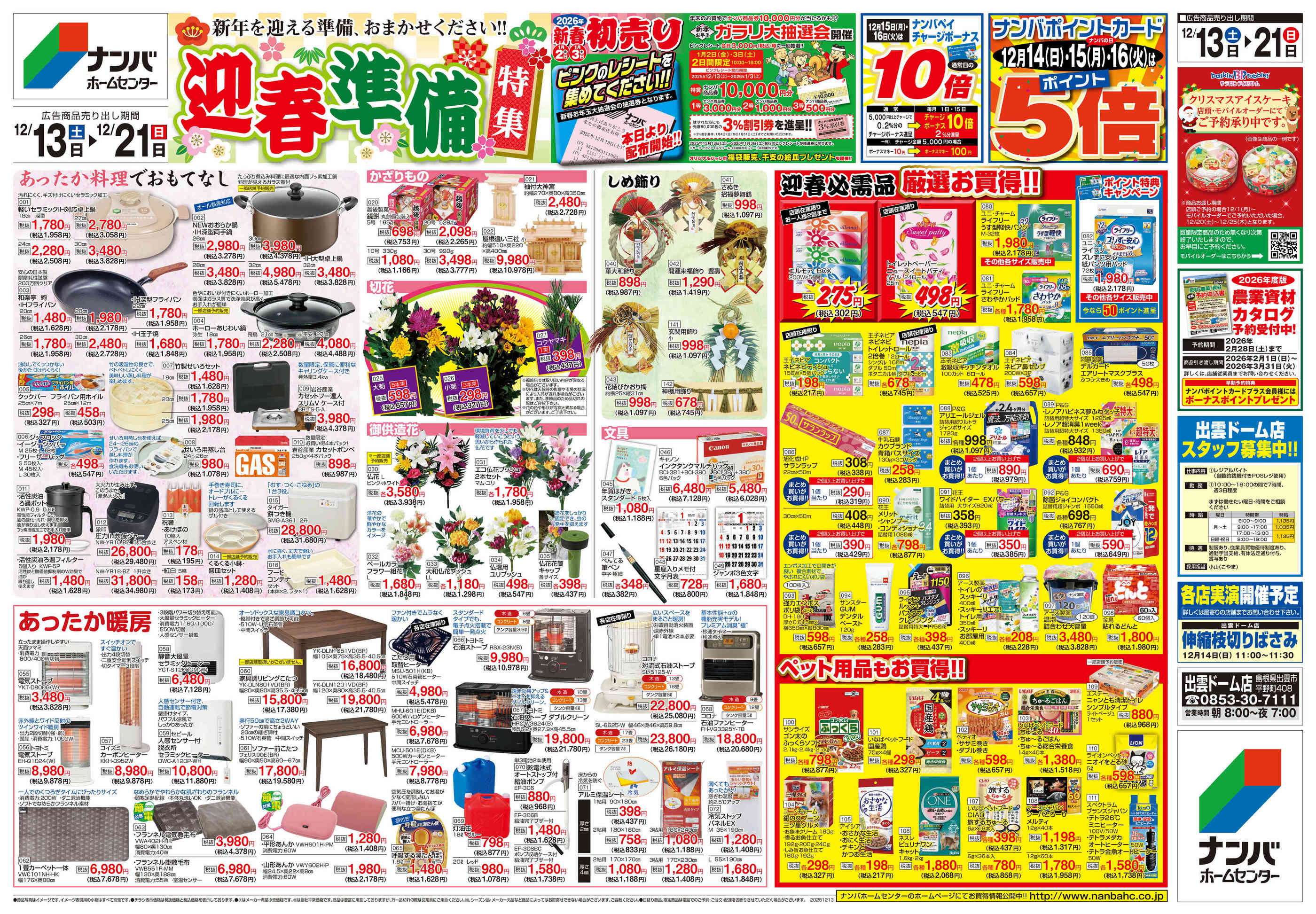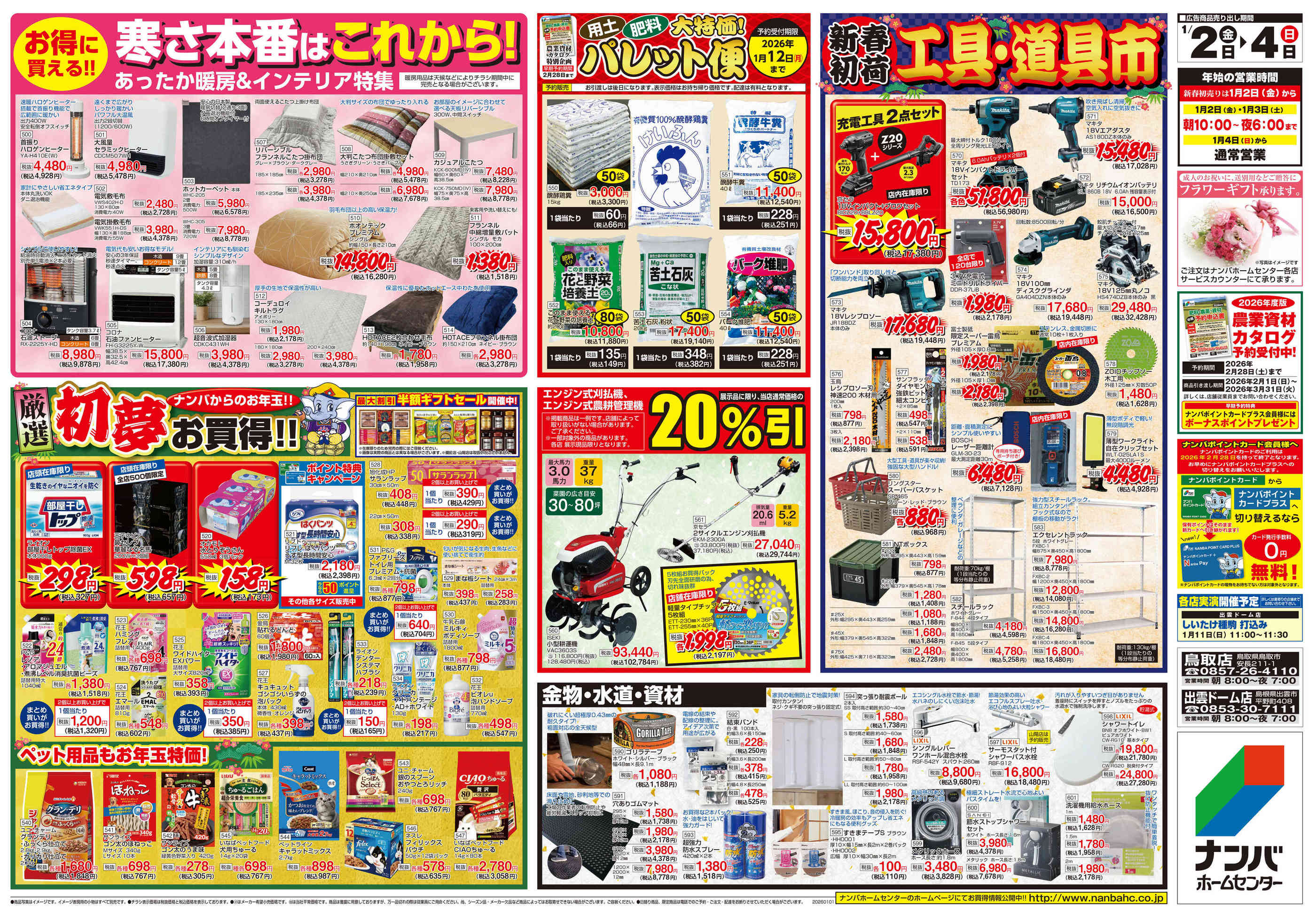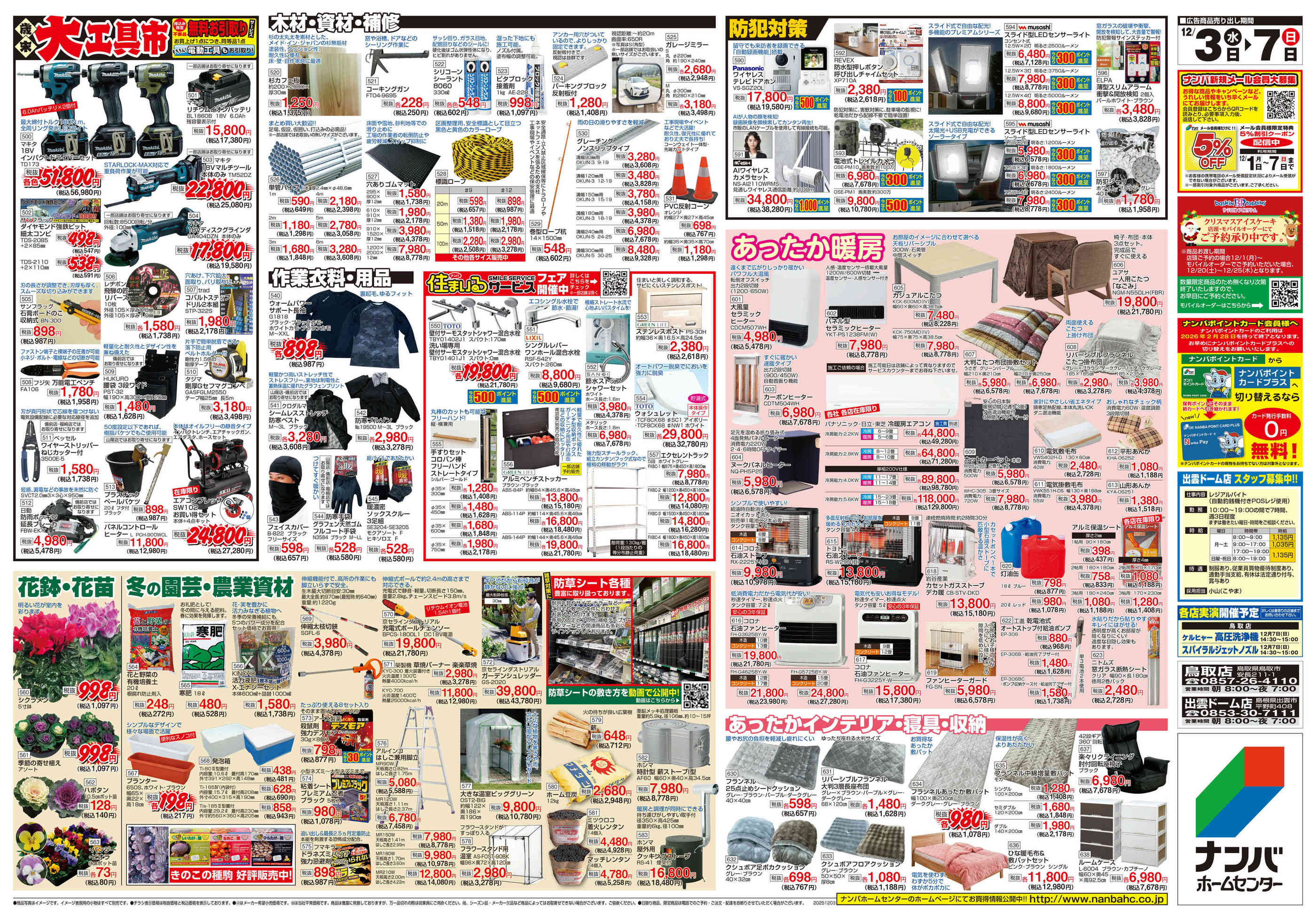 ナンバホームセンター出雲ドーム店今週のチラシ(2025年12月29日〜1月4日)