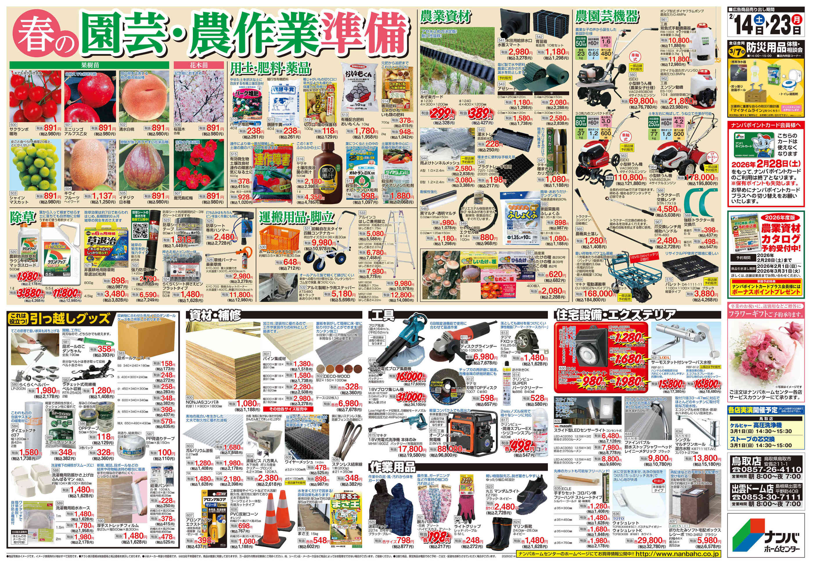 ナンバホームセンター出雲ドーム店今週のチラシ(2026年2月9日〜2月15日)