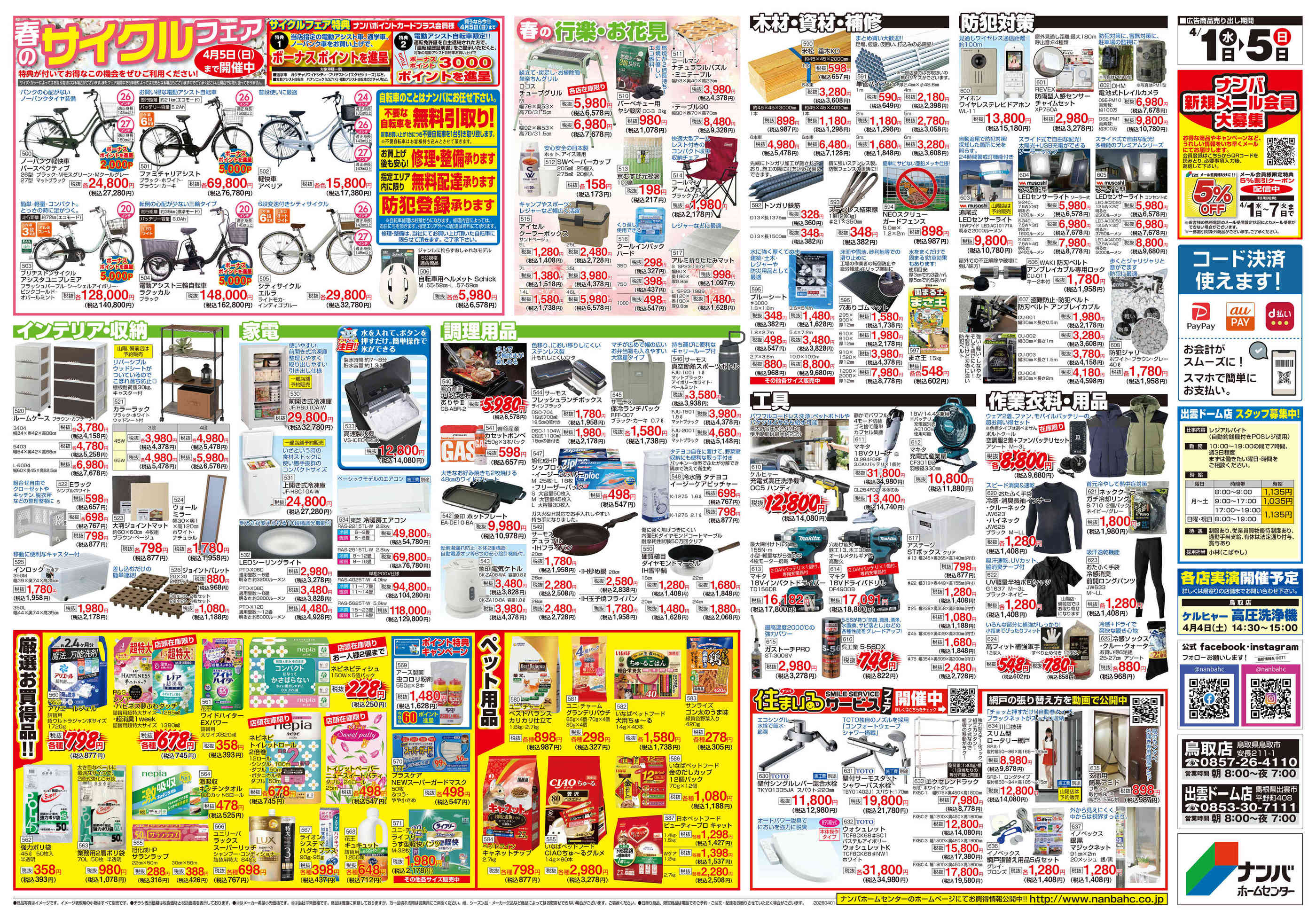 ナンバホームセンター出雲ドーム店今週のチラシ(2026年3月30日〜4月5日)
