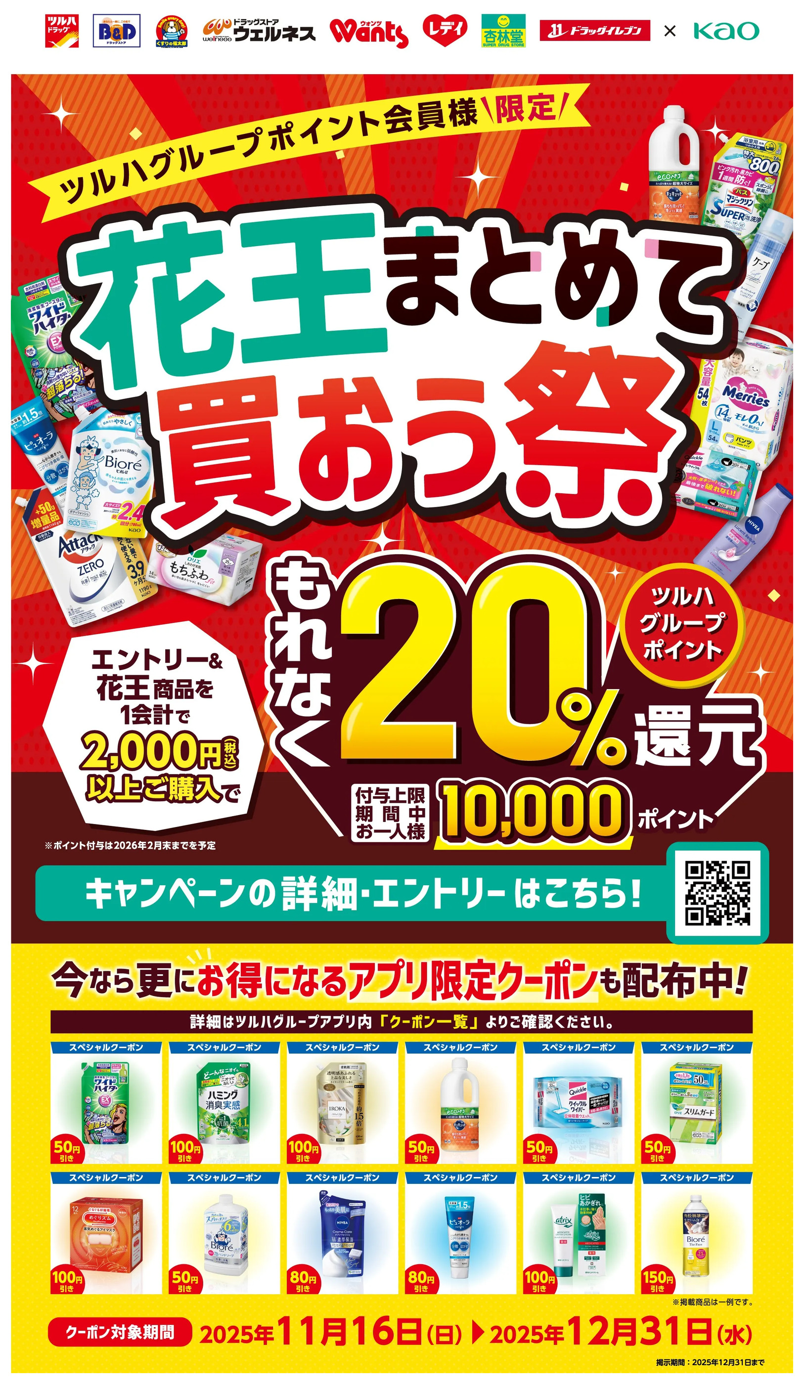 - 11/16~12/31 ウェルネス 花王まとめて買おう祭20%還元企画11月16日~12月31日 (1枚)