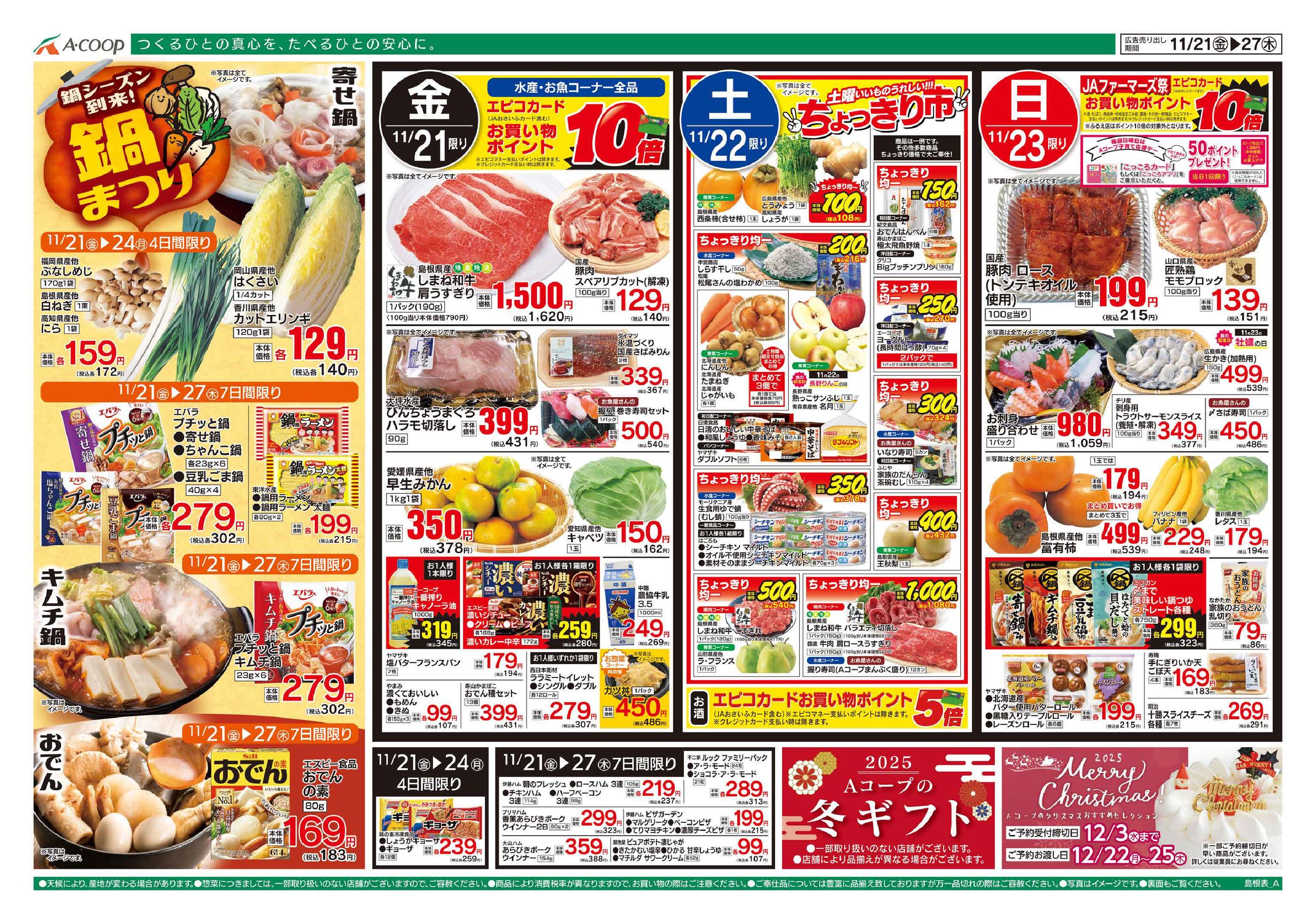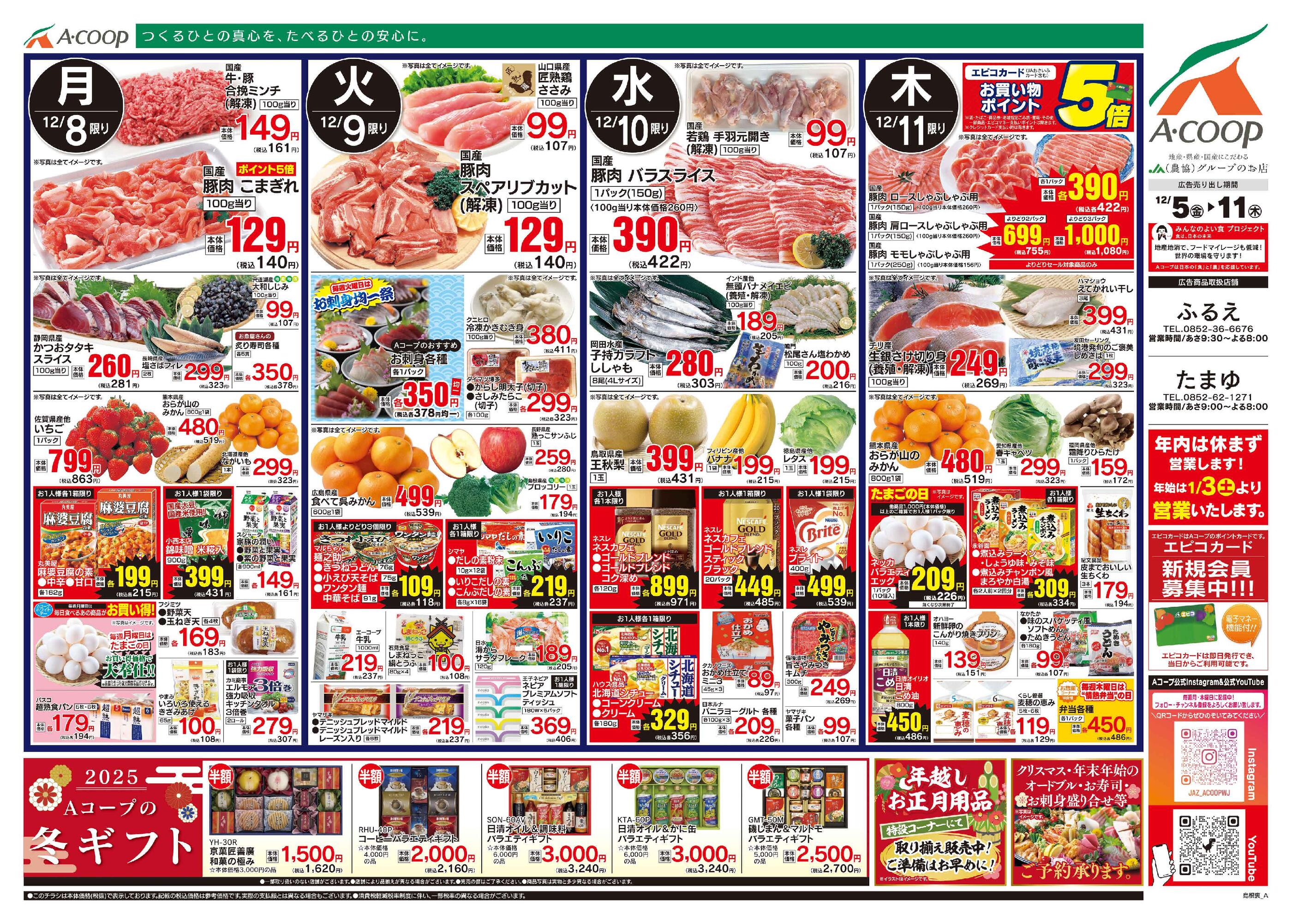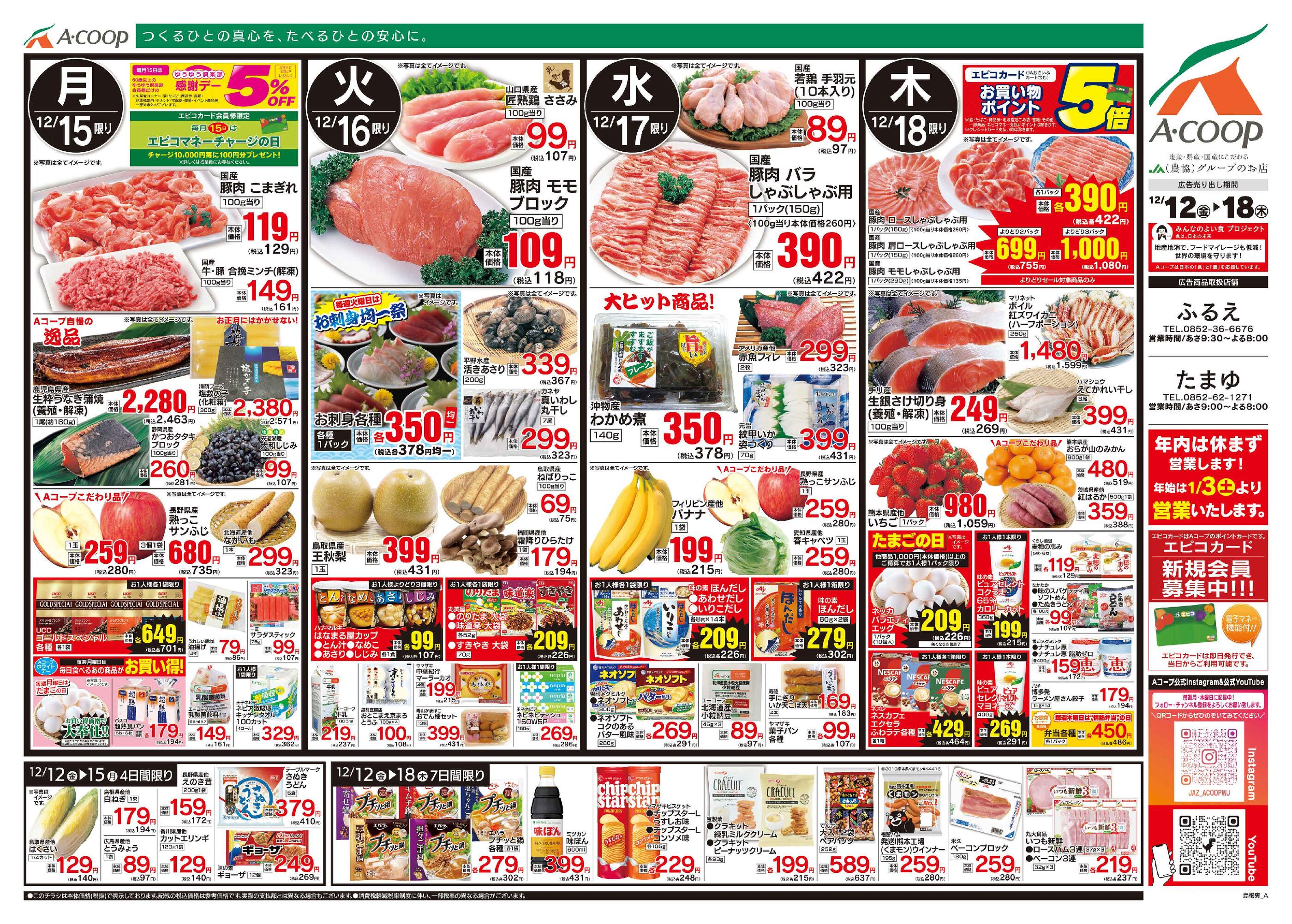 Aコープふるえ店今週のチラシ(2025年12月15日〜12月21日)