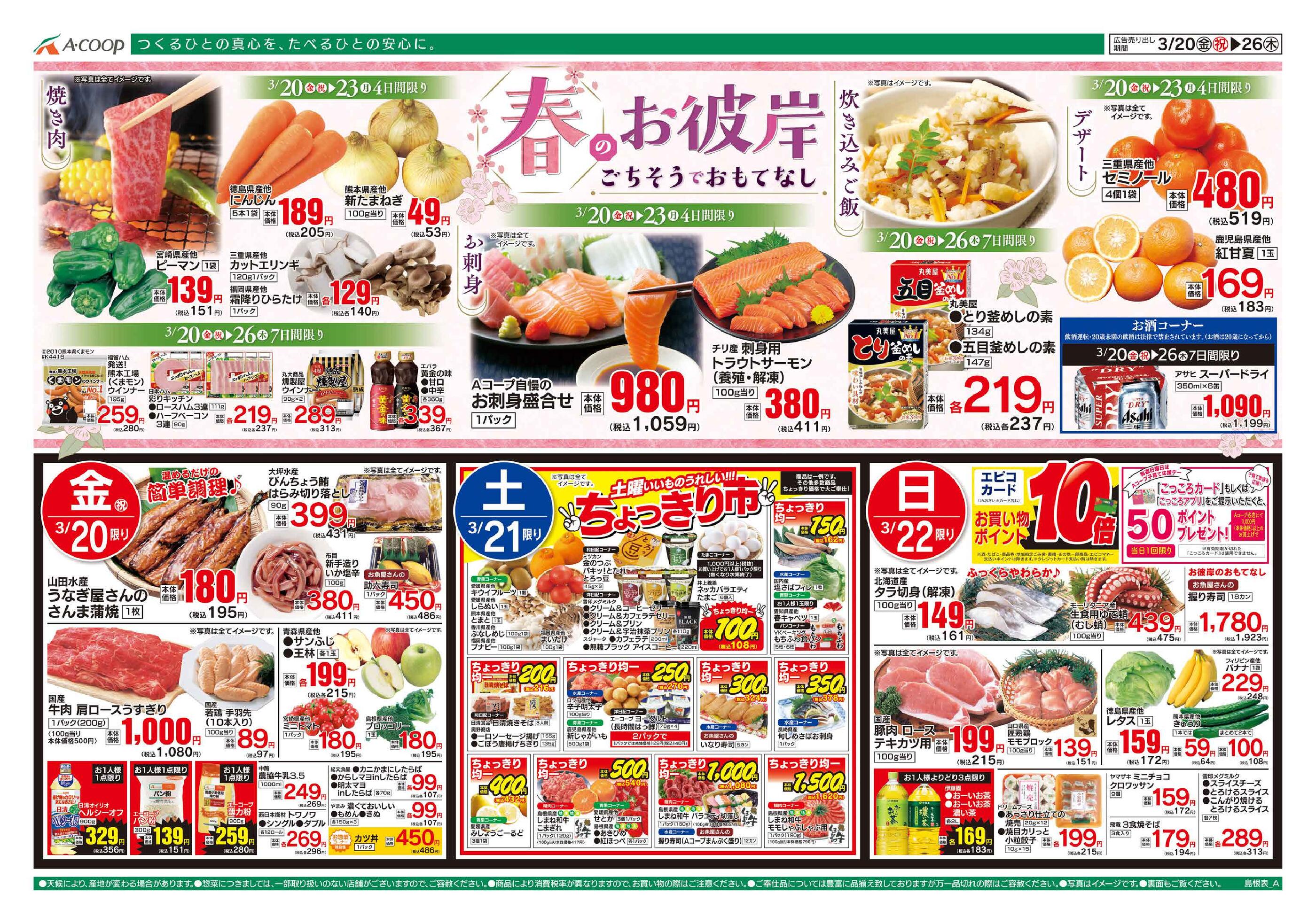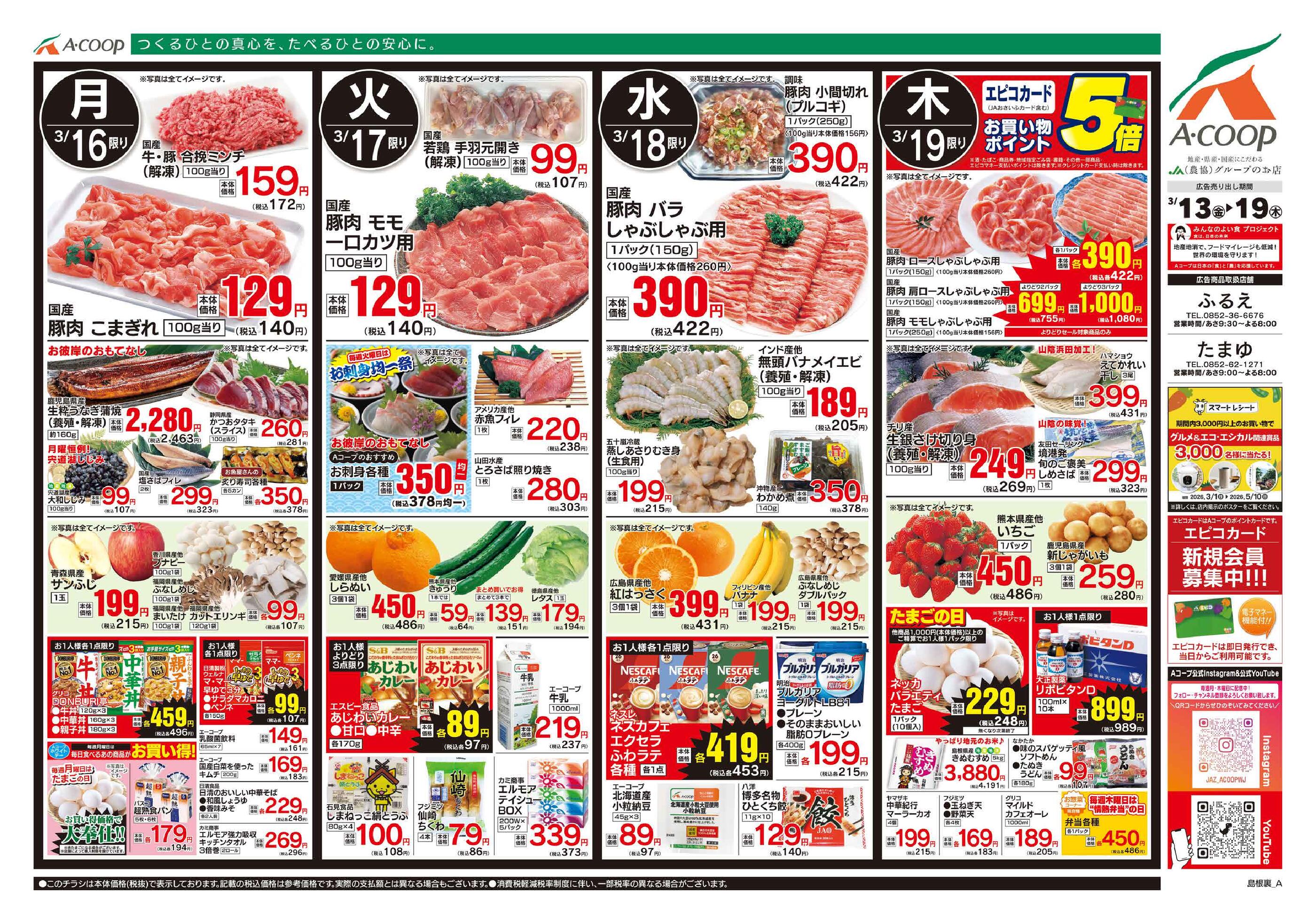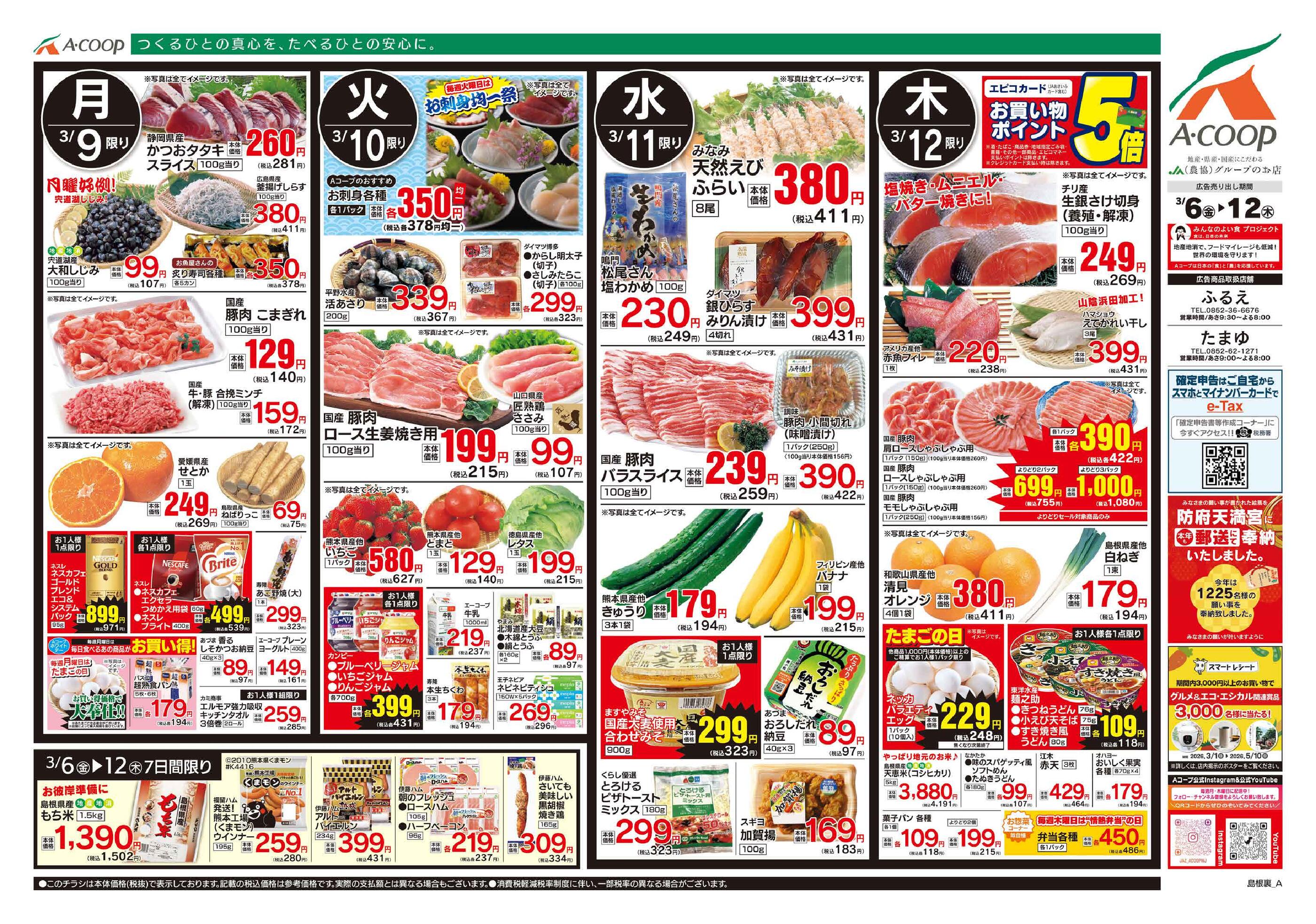 Aコープふるえ店今週のチラシ(2026年3月30日〜4月5日)