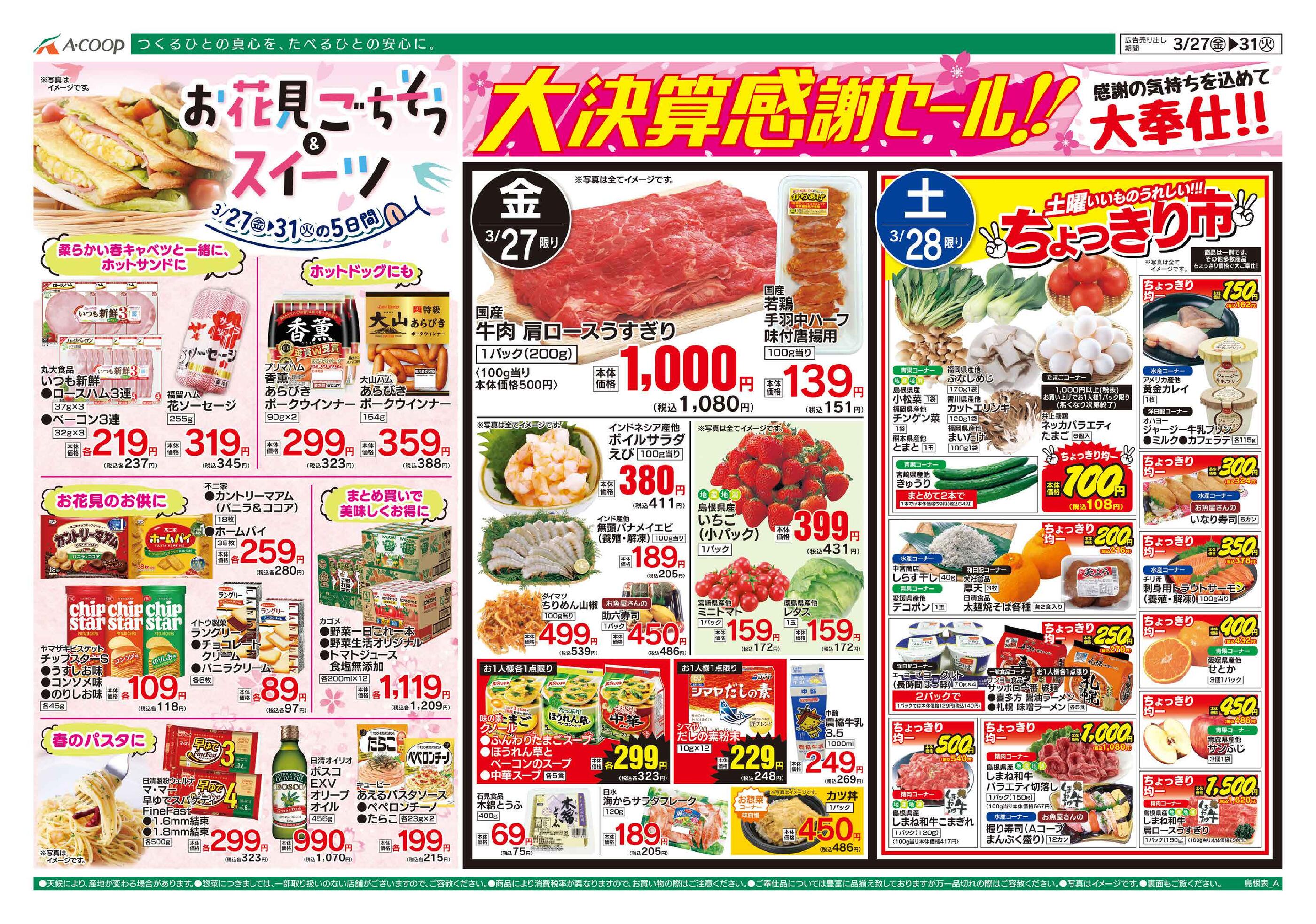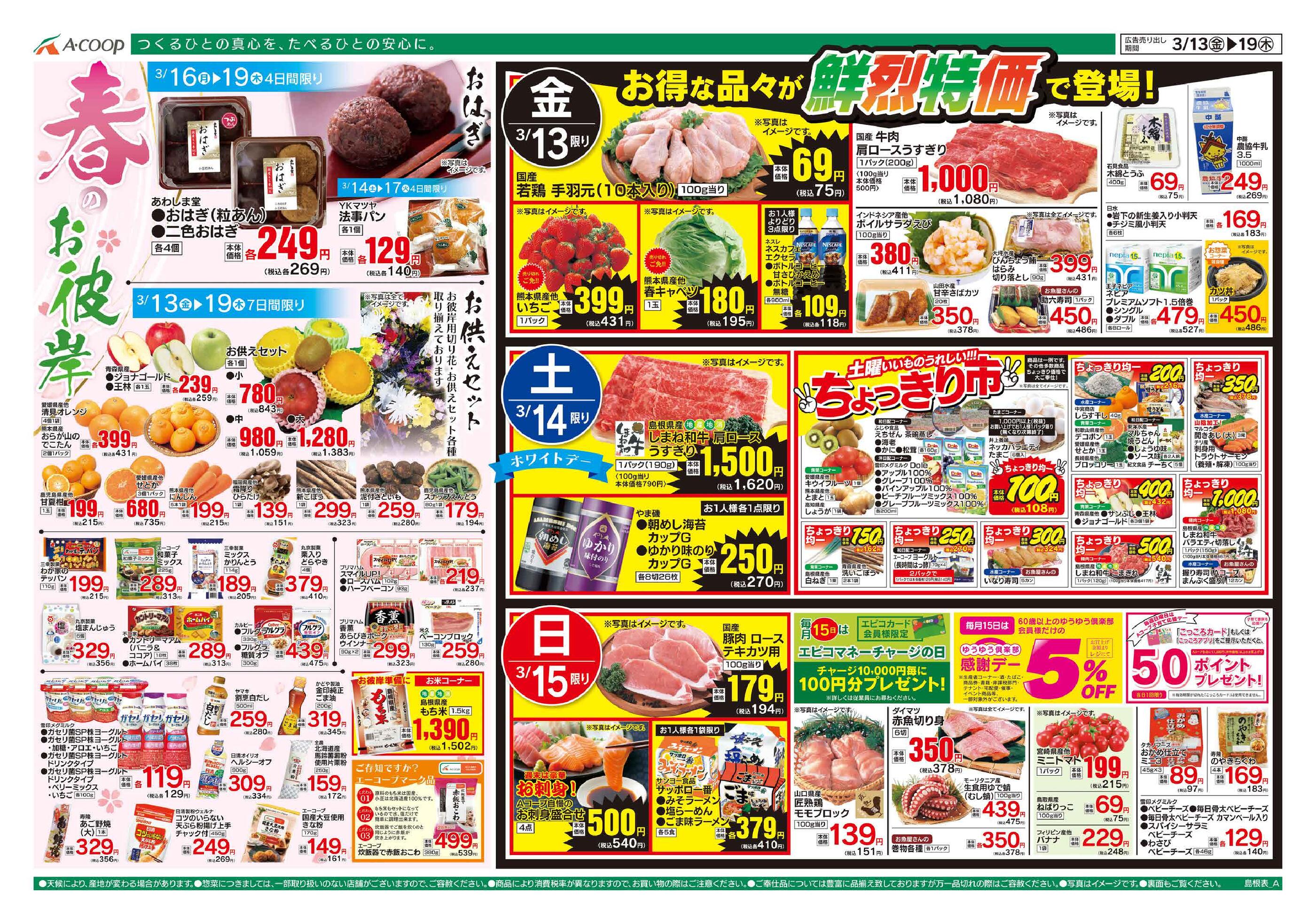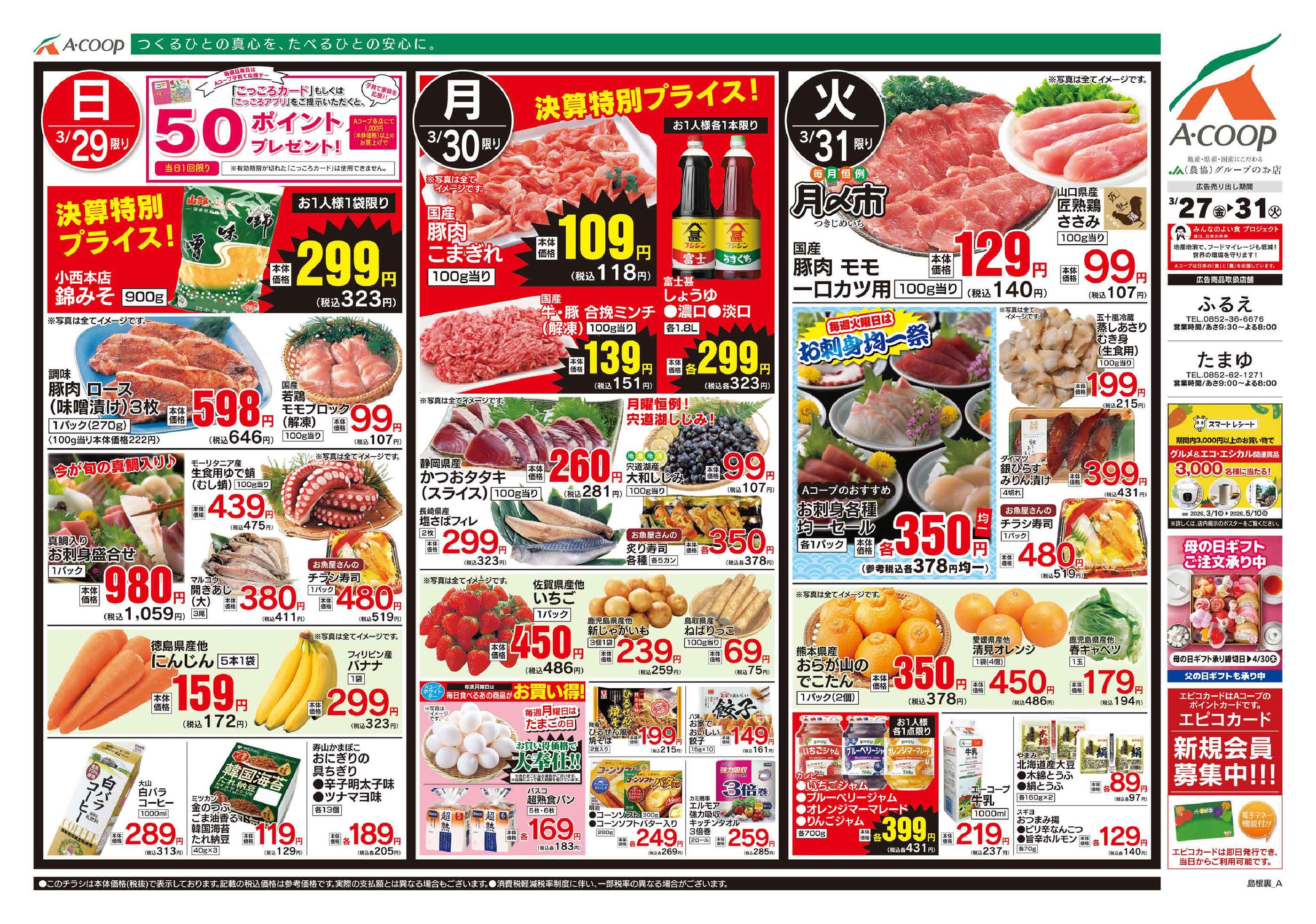 Aコープふるえ店今週のチラシ(2026年3月30日〜4月5日)