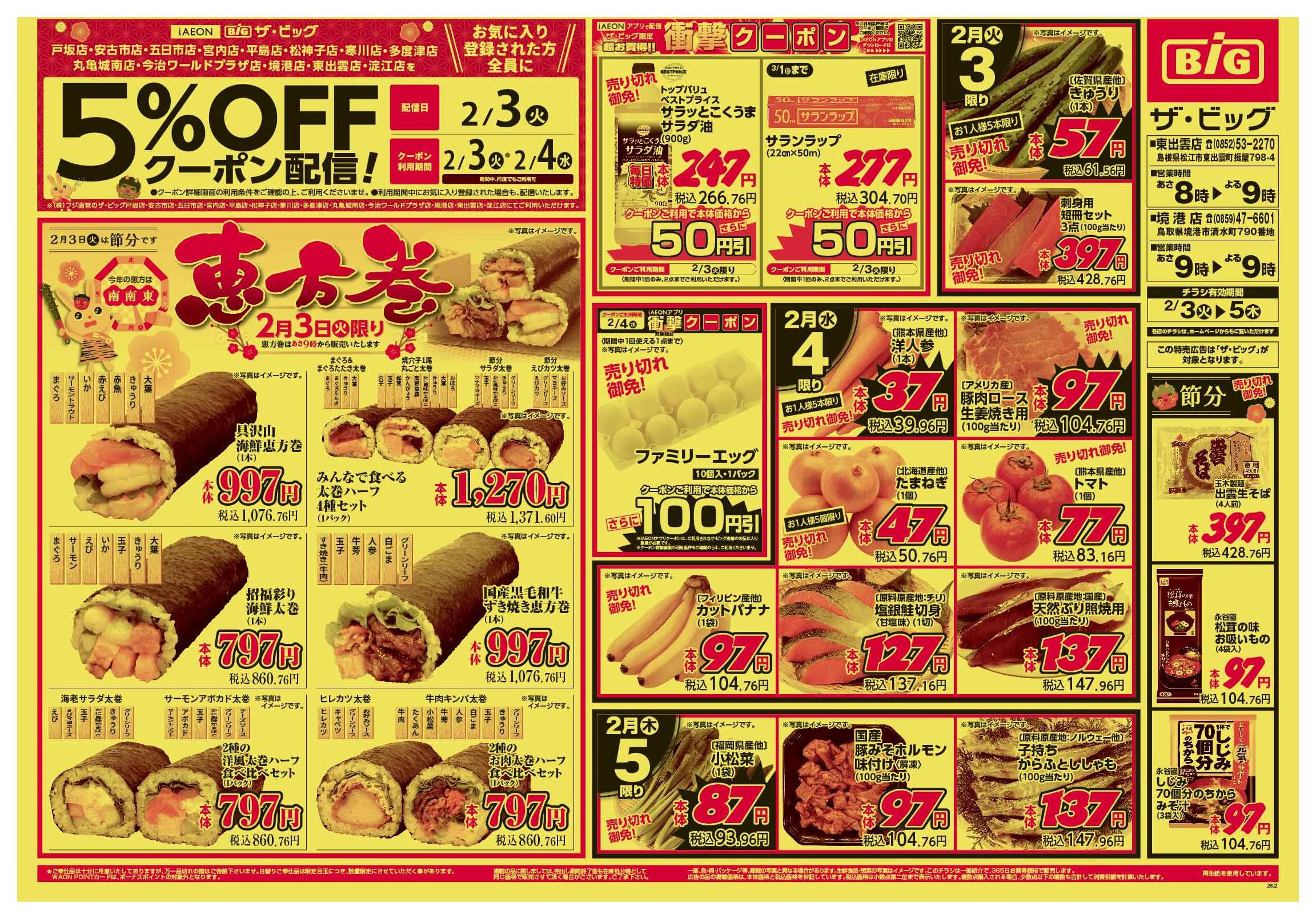 ザ・ビッグ東出雲店今週のチラシ(2026年2月2日〜2月8日)