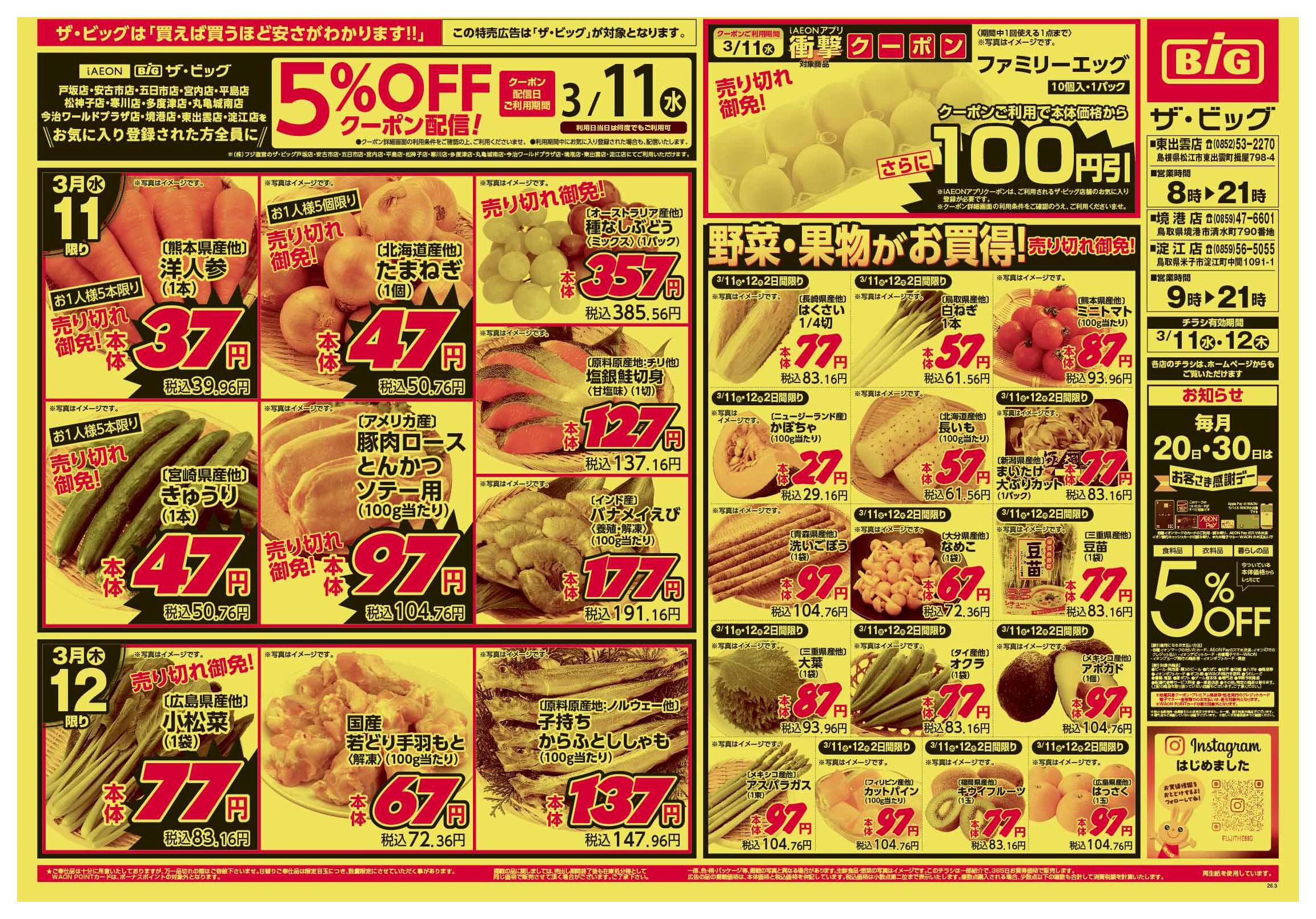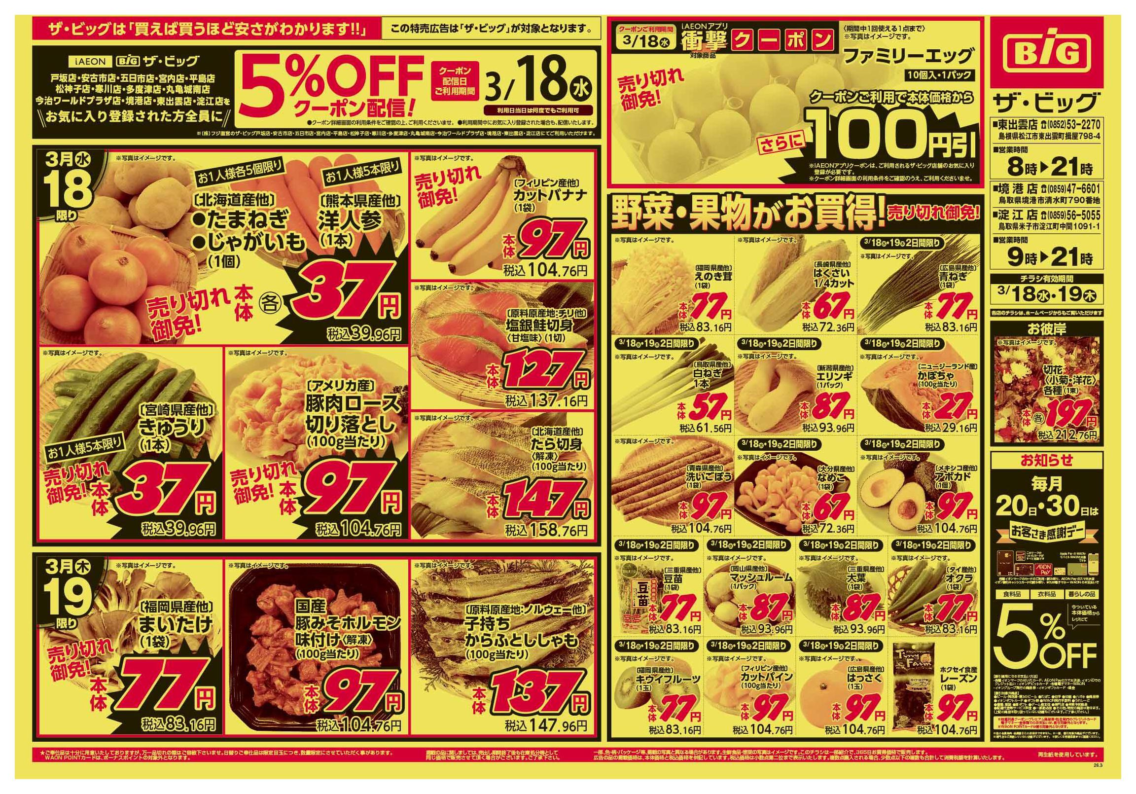 ザ・ビッグ東出雲店今週のチラシ(2026年3月23日〜3月29日)