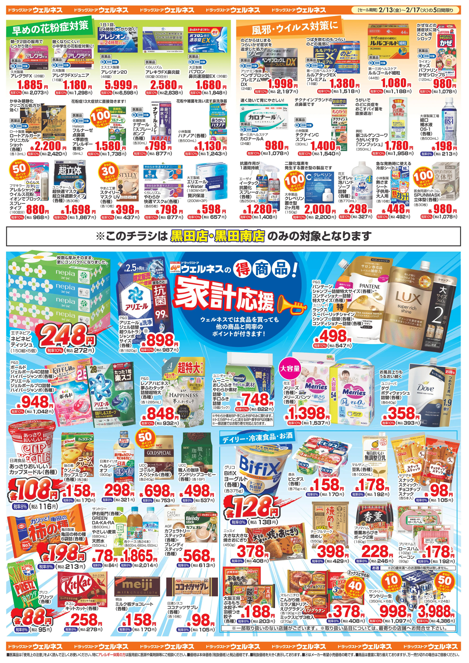 - 2/13~17 ウェルネス 黒田店・黒田南店チラシ2月13日~2月17日 (2枚)