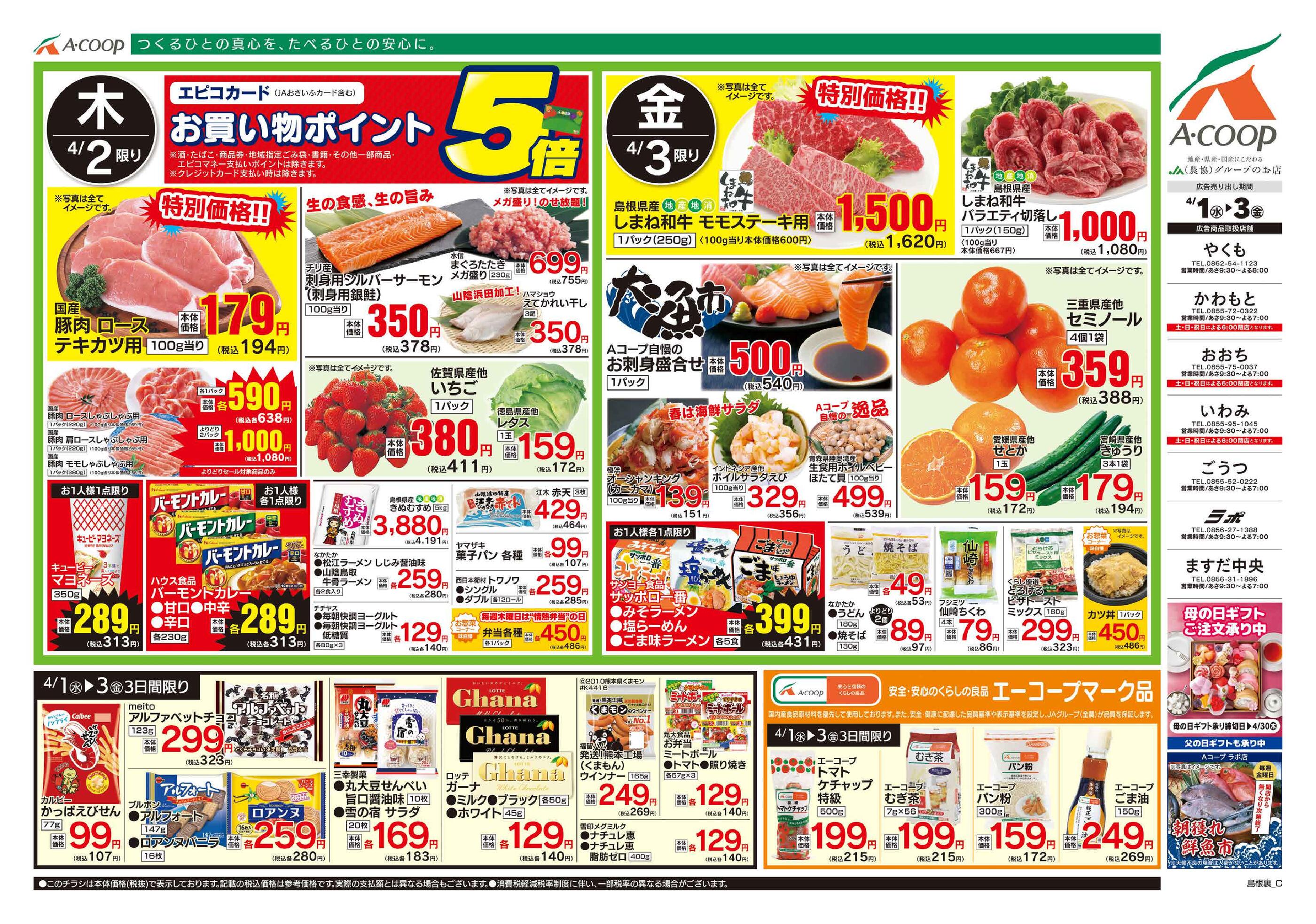 Aコープラポ店今週のチラシ(2026年3月30日〜4月5日)