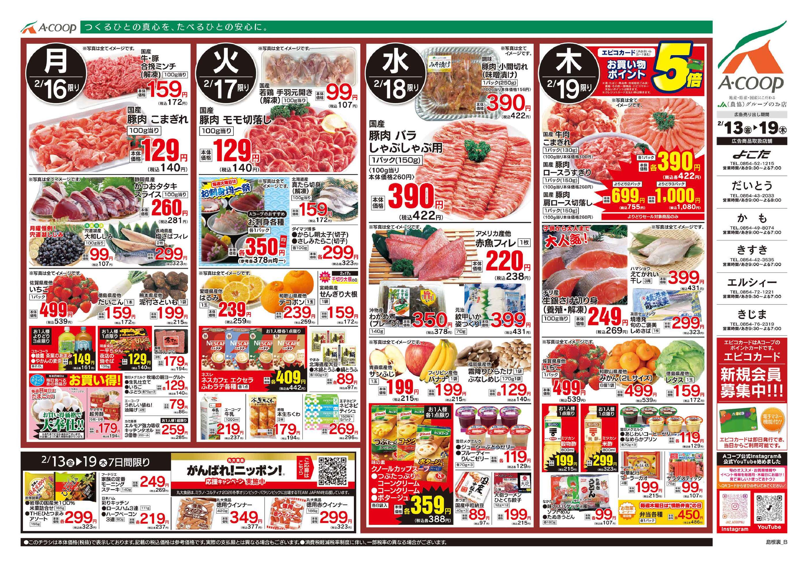 Aコープだいとう店今週のチラシ(2026年2月9日〜2月15日)