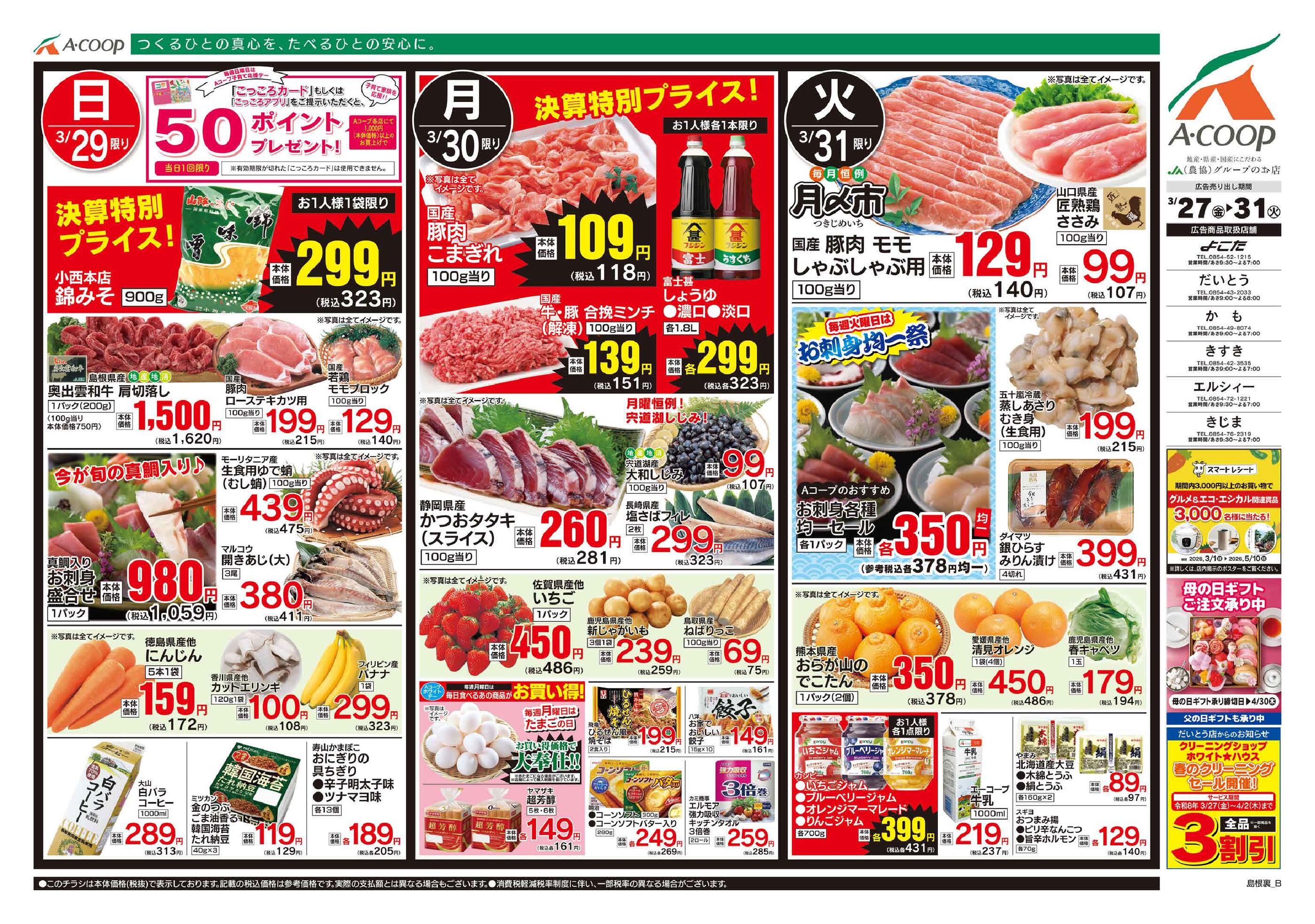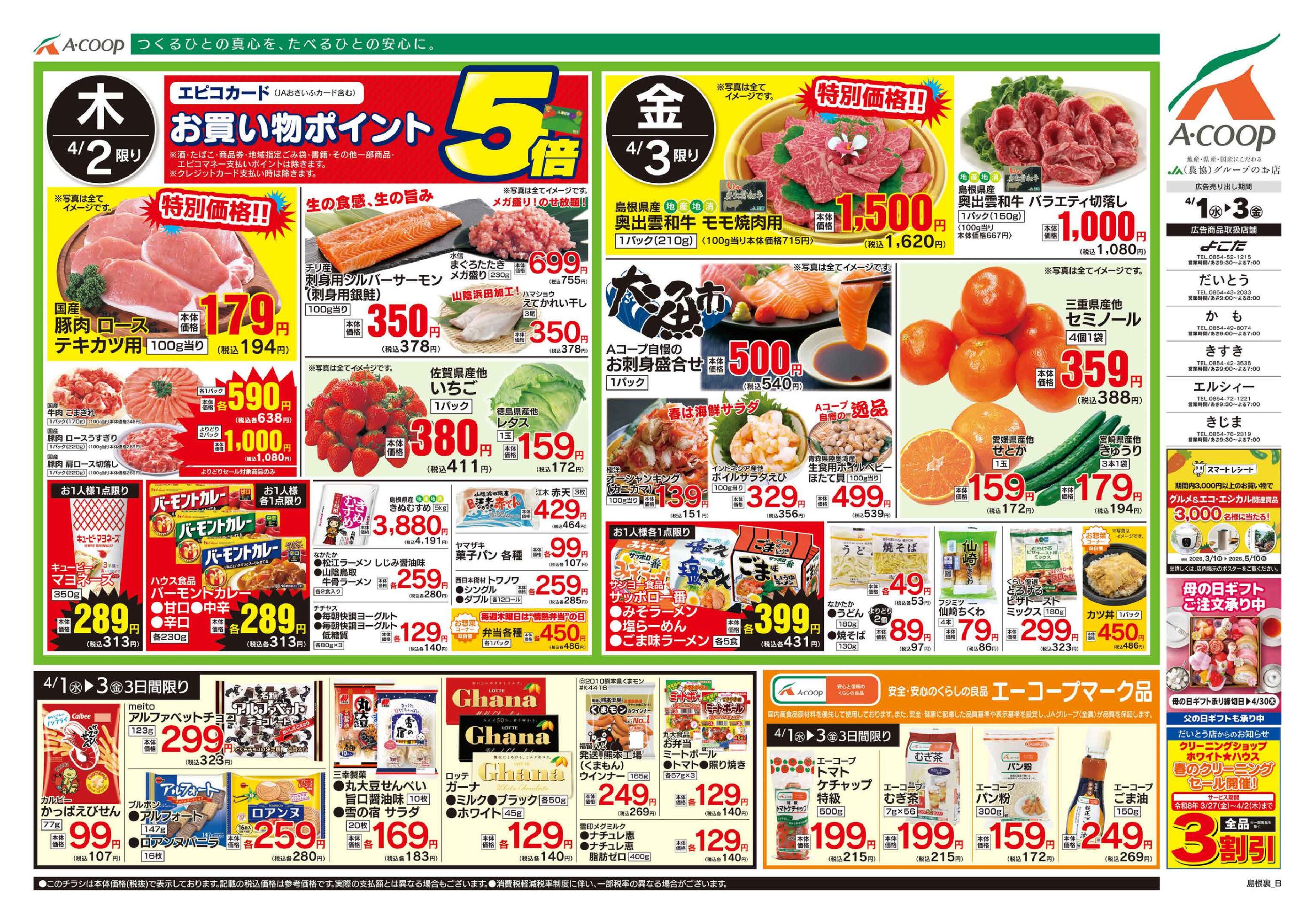 Aコープだいとう店今週のチラシ(2026年3月30日〜4月5日)