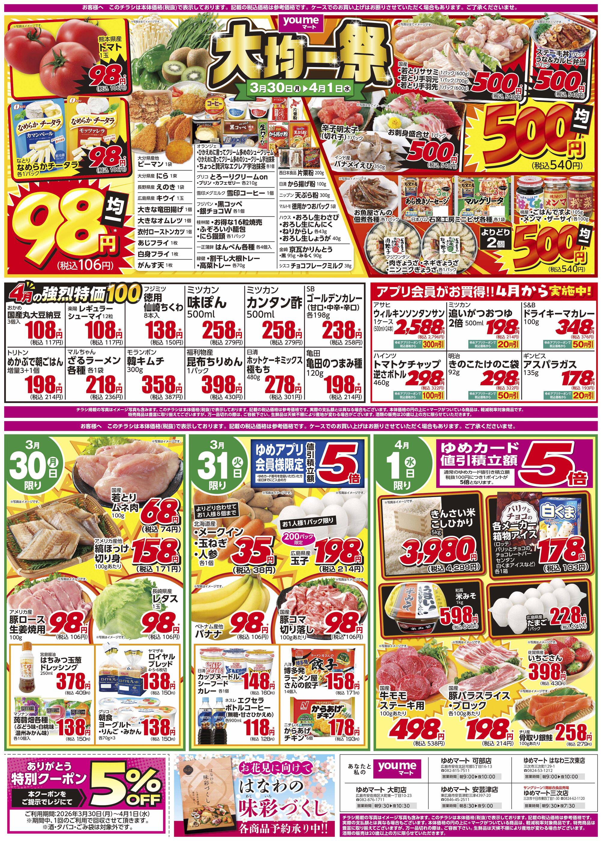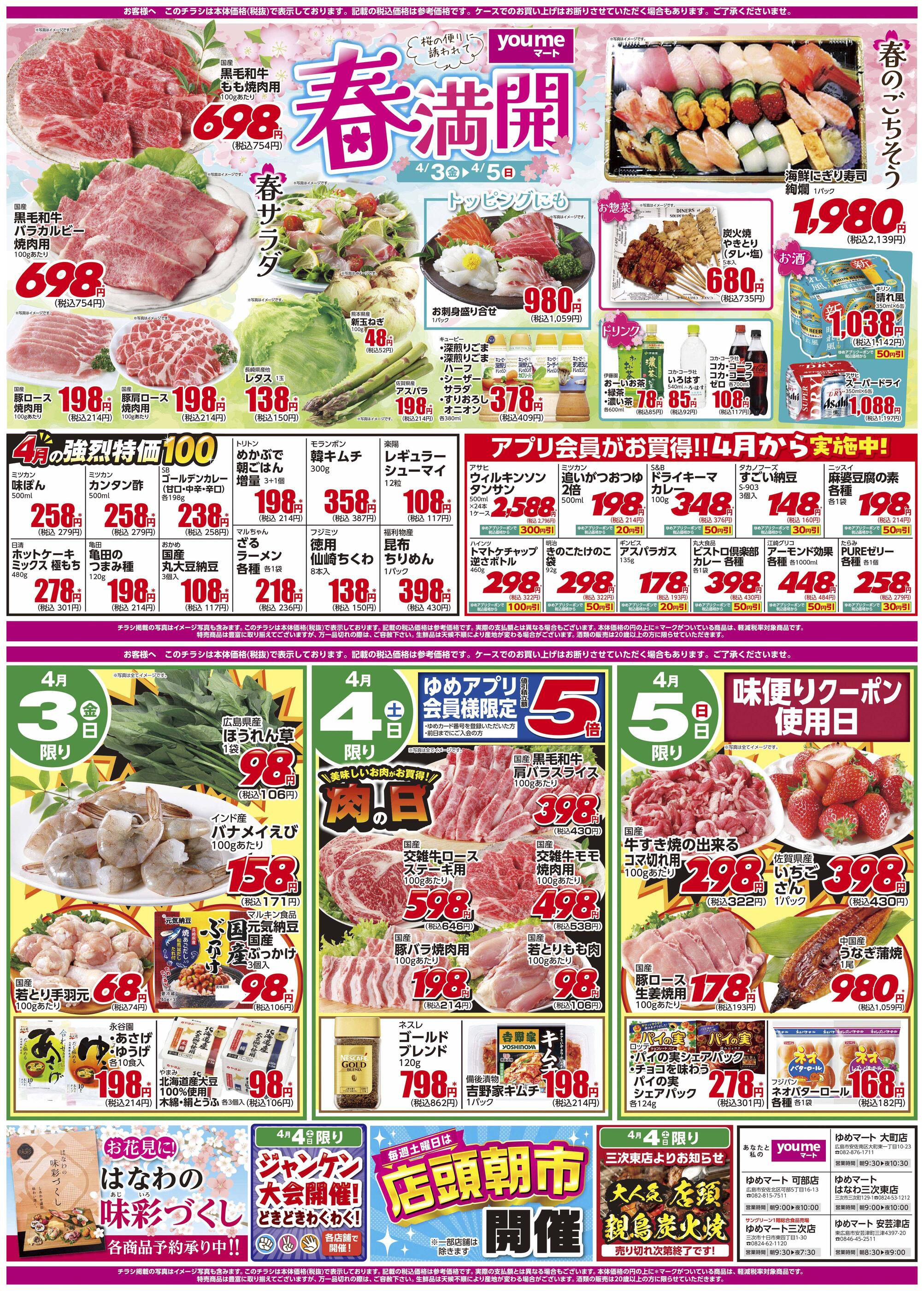 ゆめマートはなわ三次東店今週のチラシ(2026年4月6日〜4月12日)