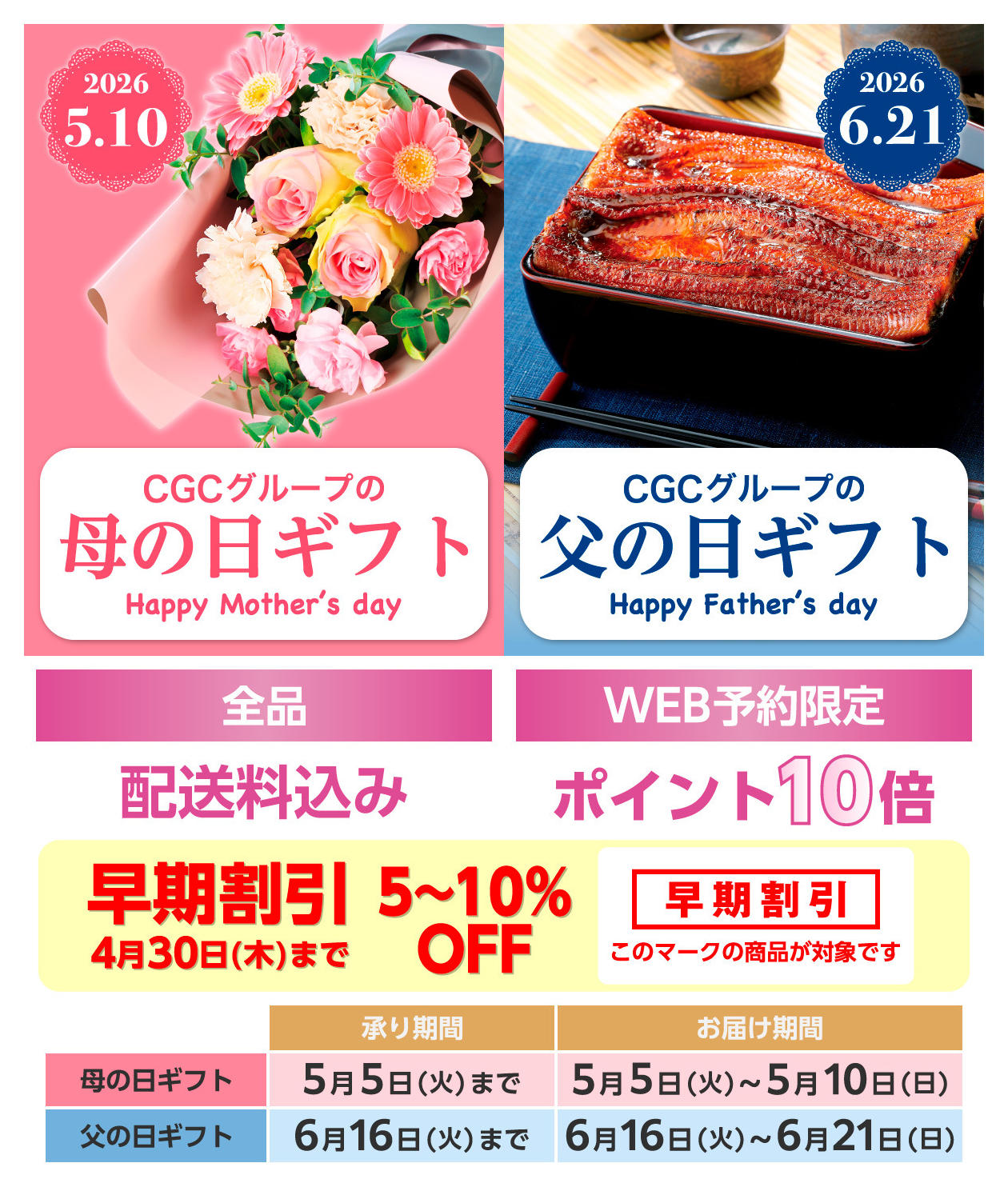 - 2026年4月6〜30日までCGCグループの母の日&父の日ギフト (1枚)