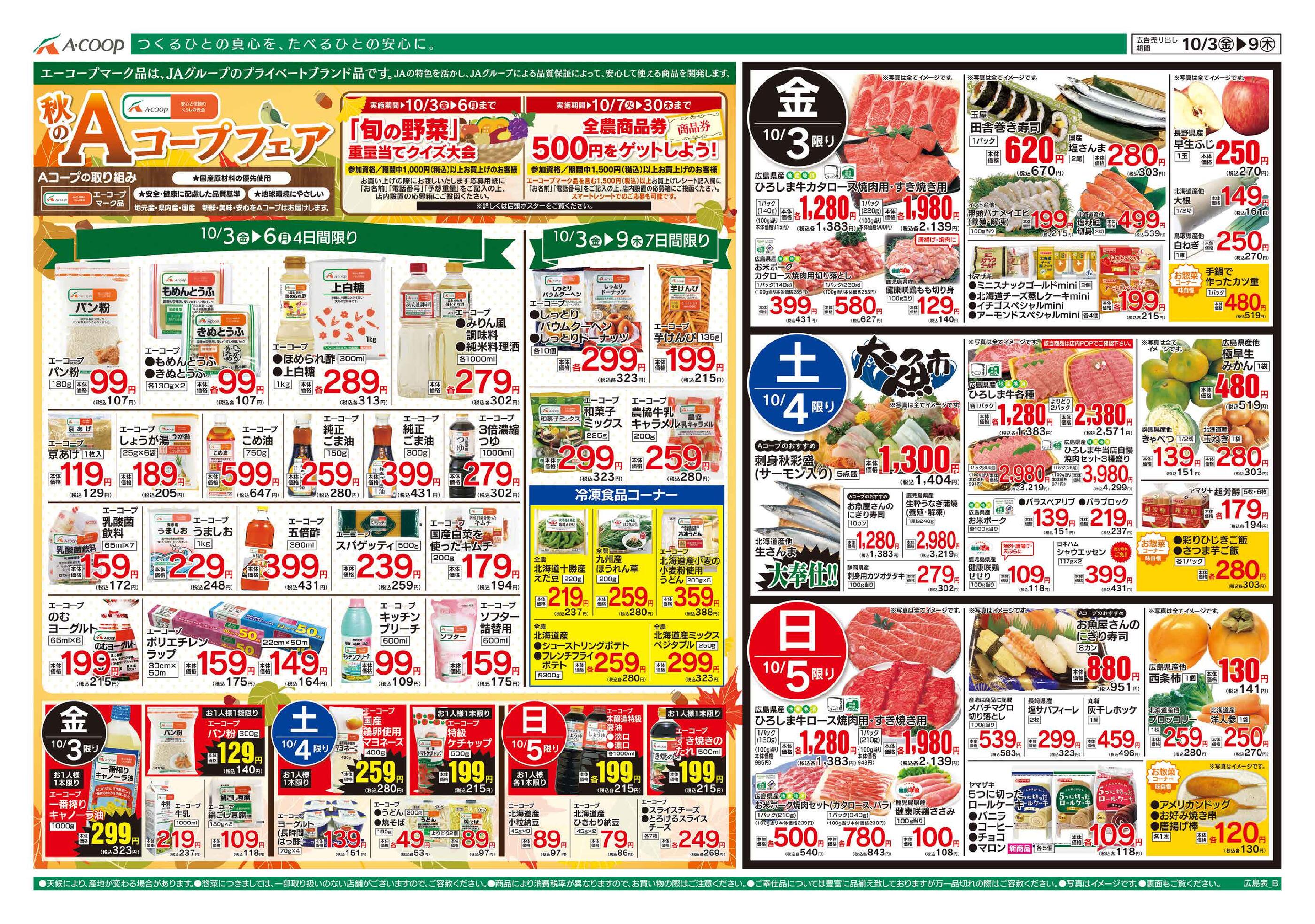 Aコープみらさか店今週のチラシ(2025年9月29日〜10月5日)