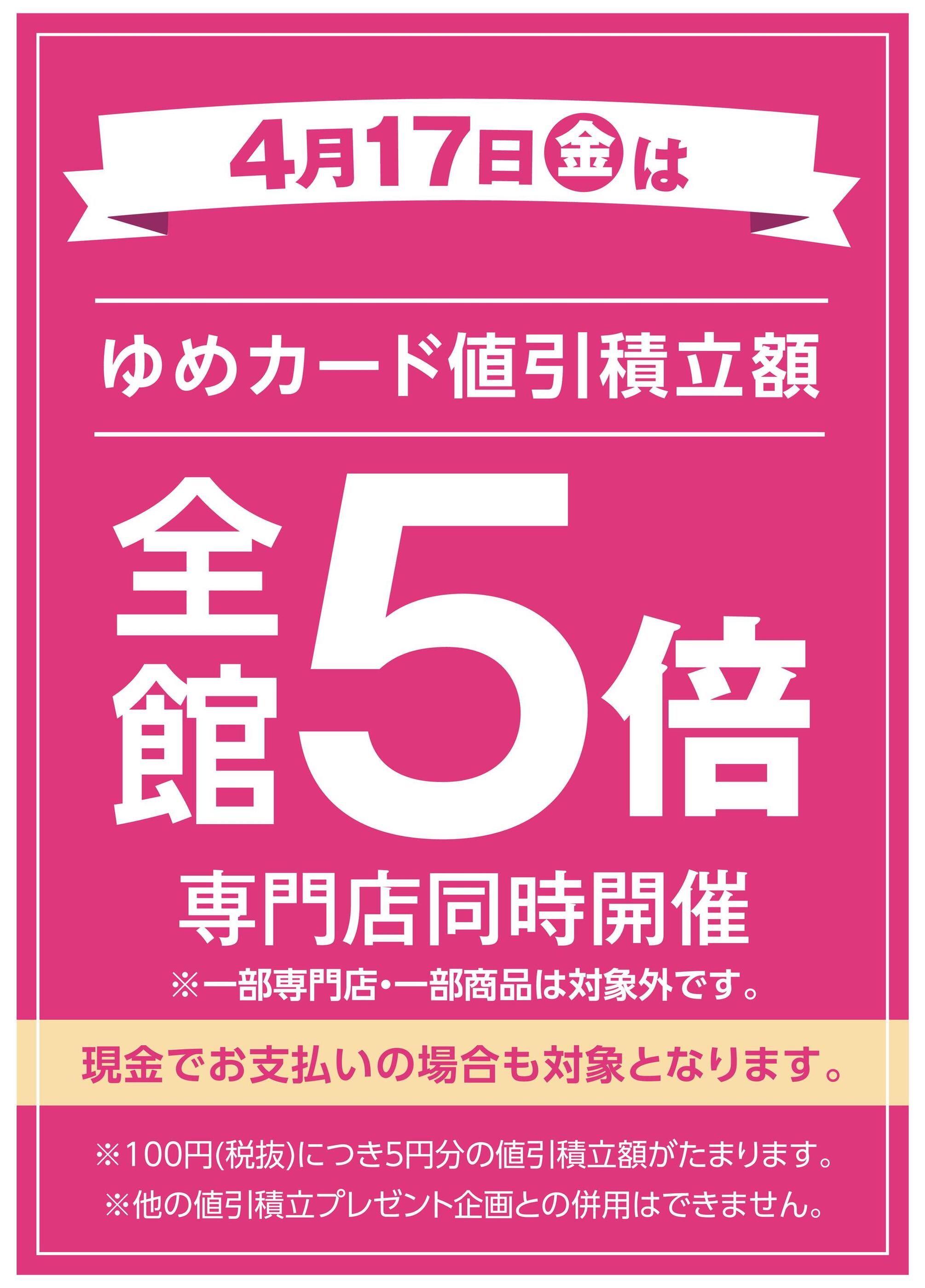 - ゆめアプリ会員様限定!毎週土曜日は直営売場5倍new (1枚)
