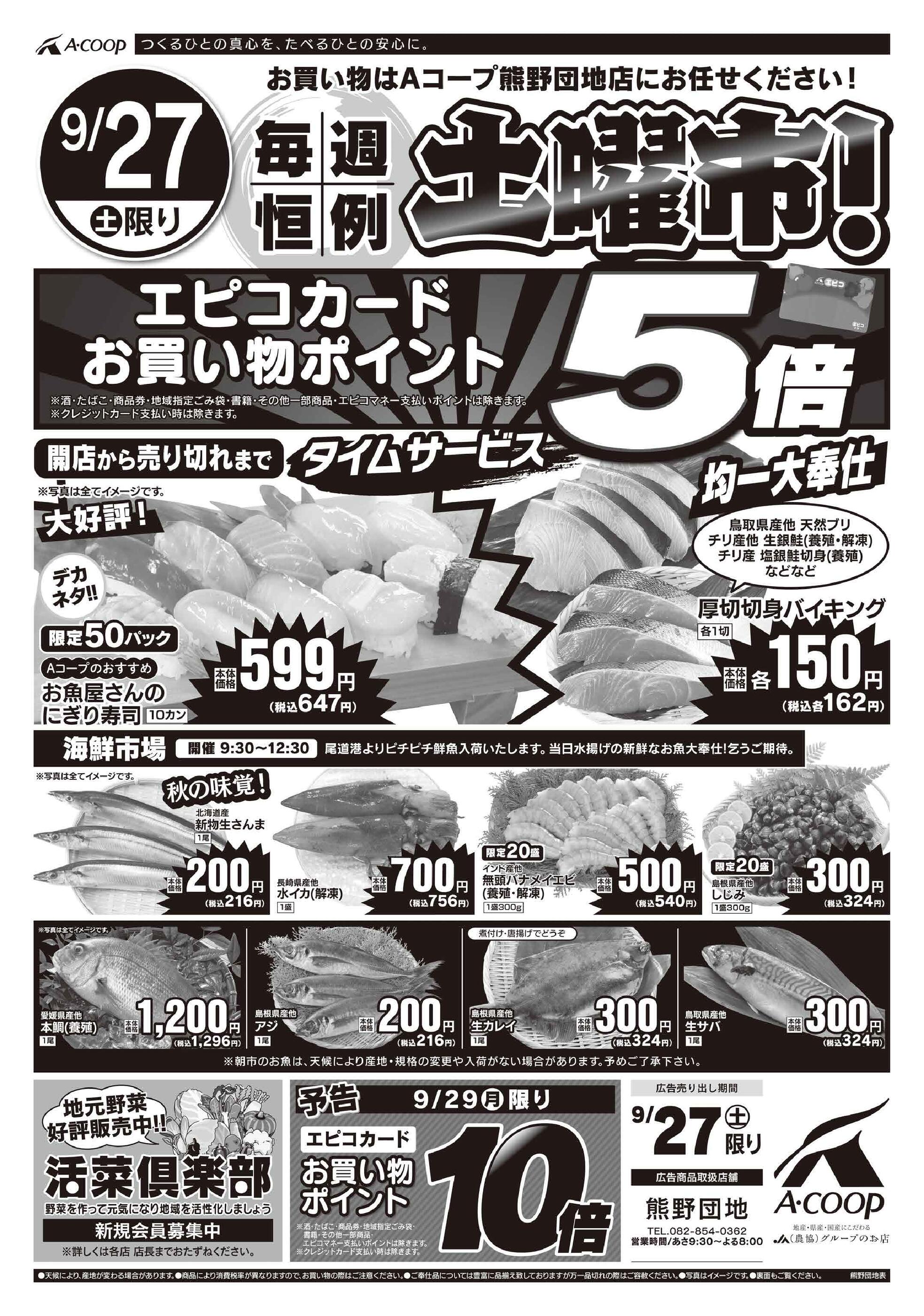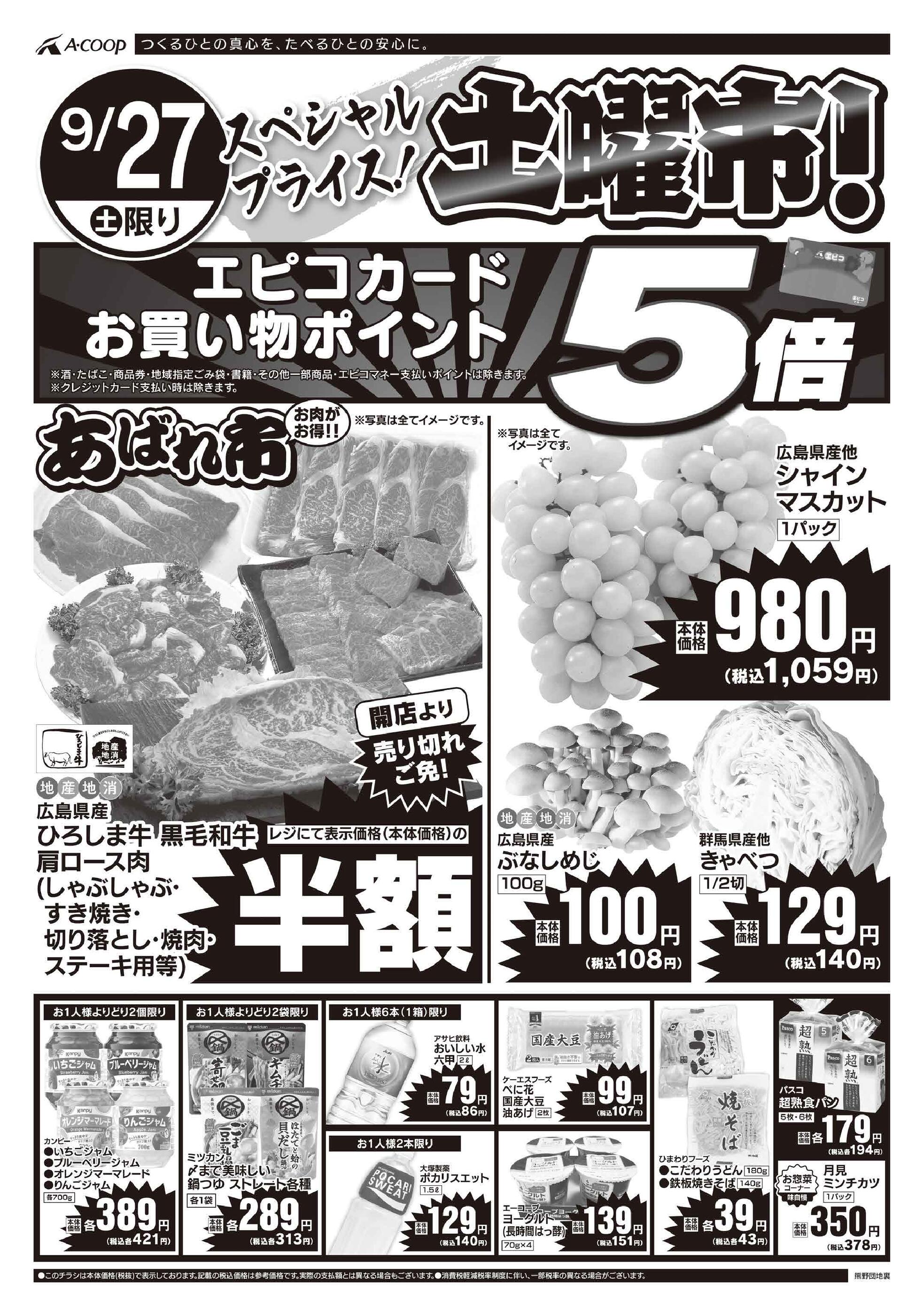 Aコープ熊野団地店今週のチラシ(2025年9月29日〜10月5日)