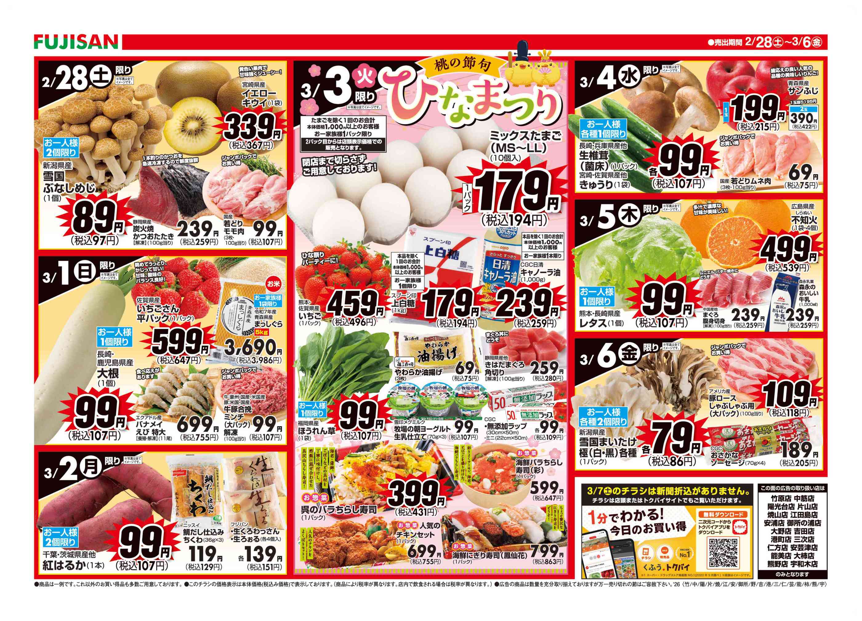 藤三熊野ショッピングセンター今週のチラシ(2026年2月23日〜3月1日)