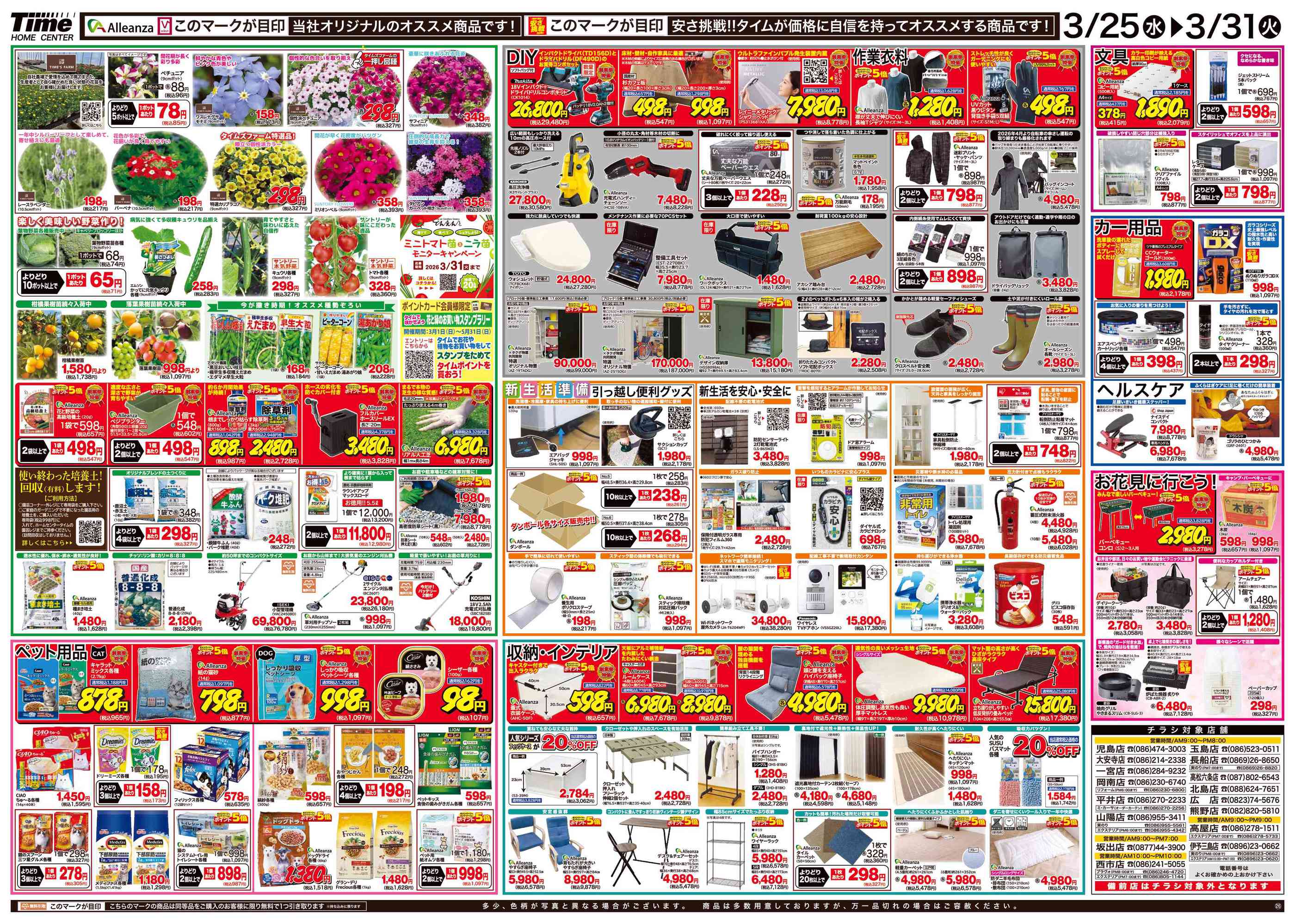 ホームセンタータイム熊野店今週のチラシ(2026年3月23日〜3月29日)