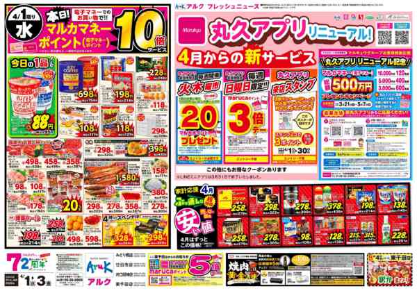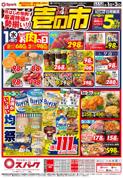 特売やセール情報など最新のチラシを掲載中。(4種類、12枚のチラシを掲載しています)