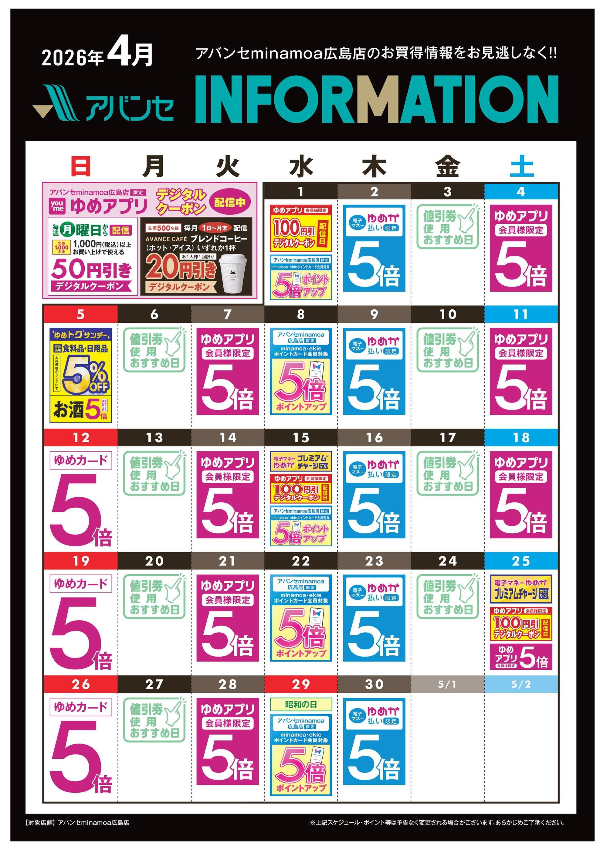 アバンセminamoa広島店今週のチラシ(2026年3月30日〜4月5日)