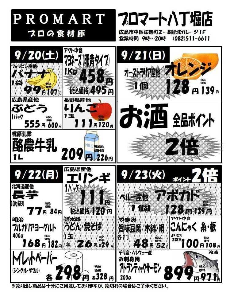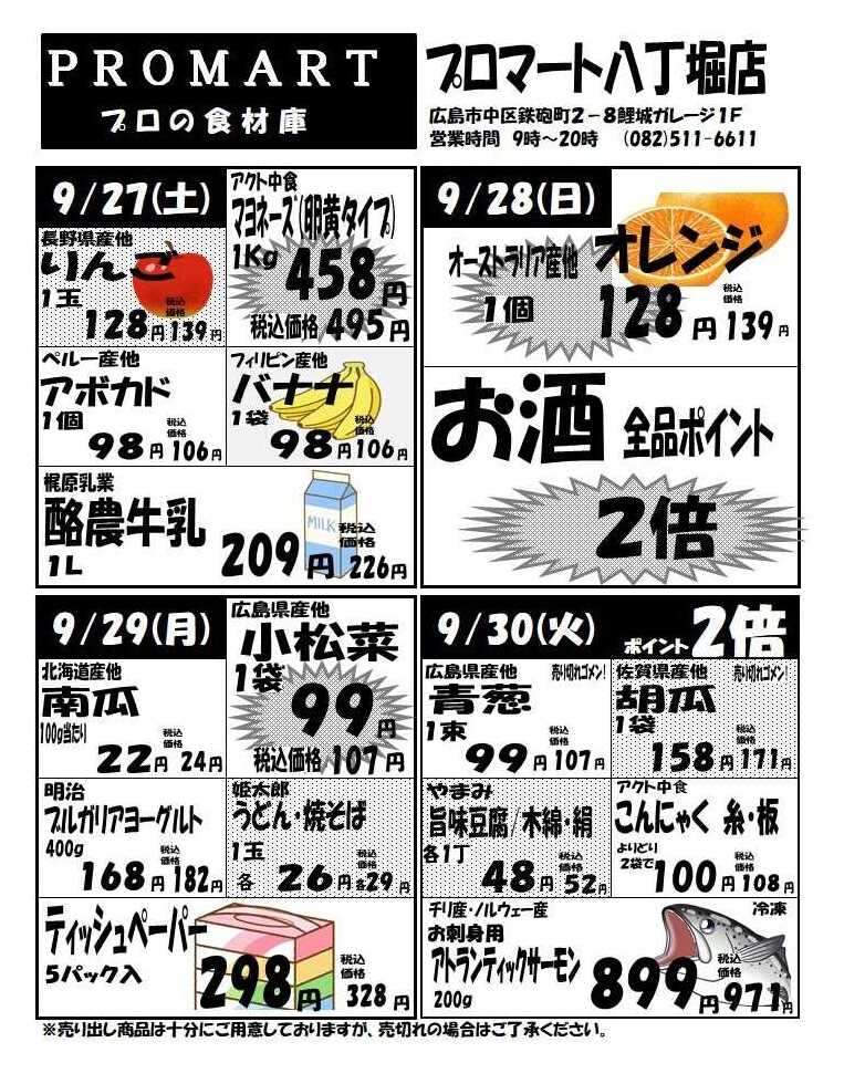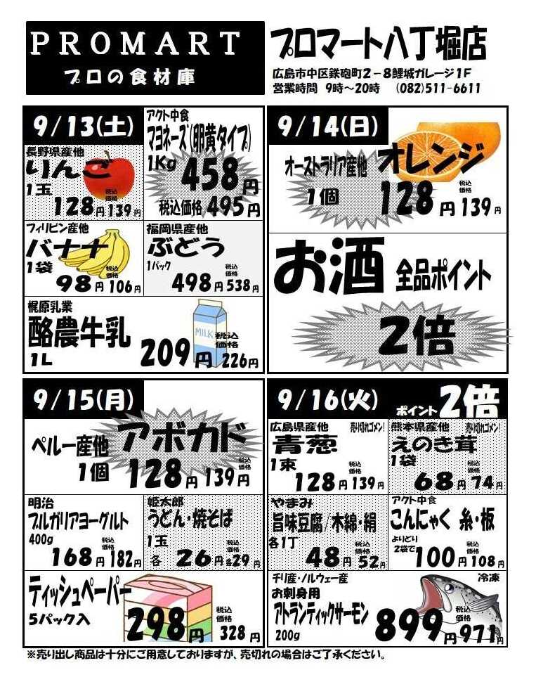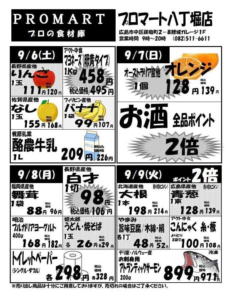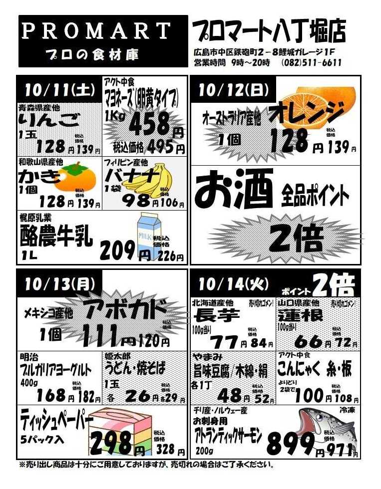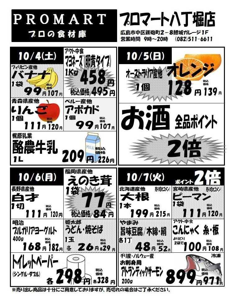 プロマ-ト八丁堀店今週のチラシ(2025年10月6日〜10月12日)