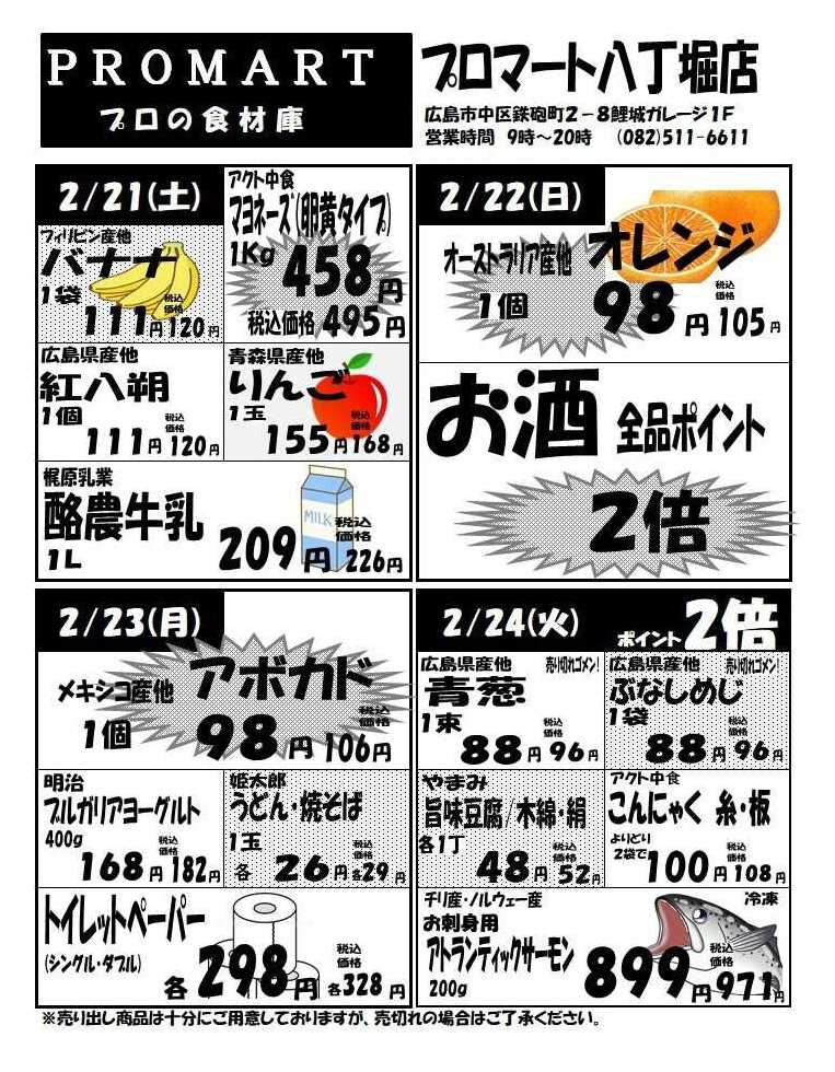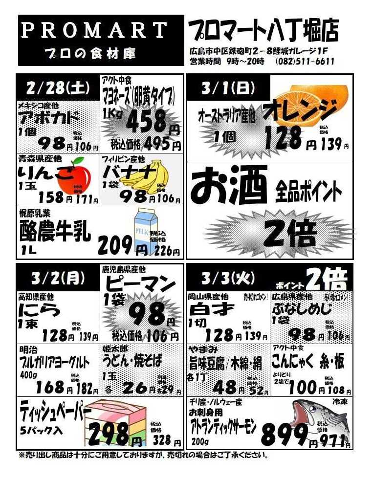 プロマート八丁堀店今週のチラシ(2026年2月23日〜3月1日)
