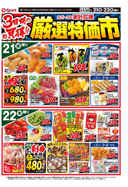 特売やセール情報など最新のチラシを掲載中。(3種類、6枚のチラシを掲載しています)