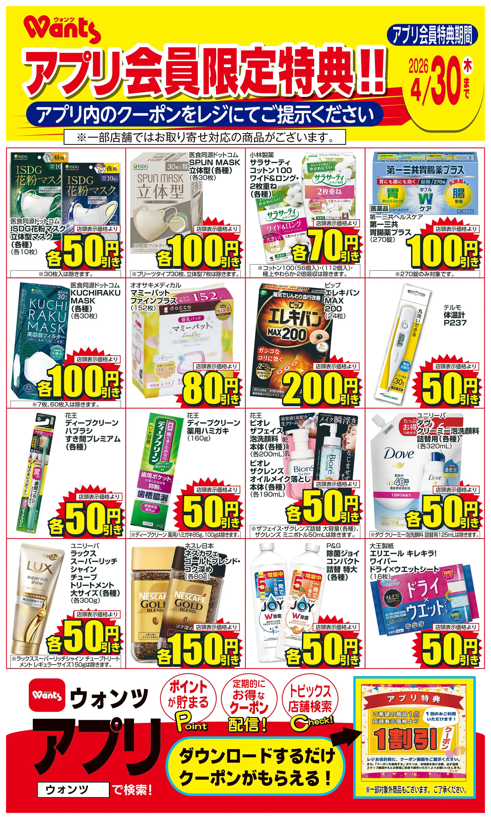 - 4/1~4/30 ウォンツアプリクーポンチラシ4月1日~4月30日new (1枚)