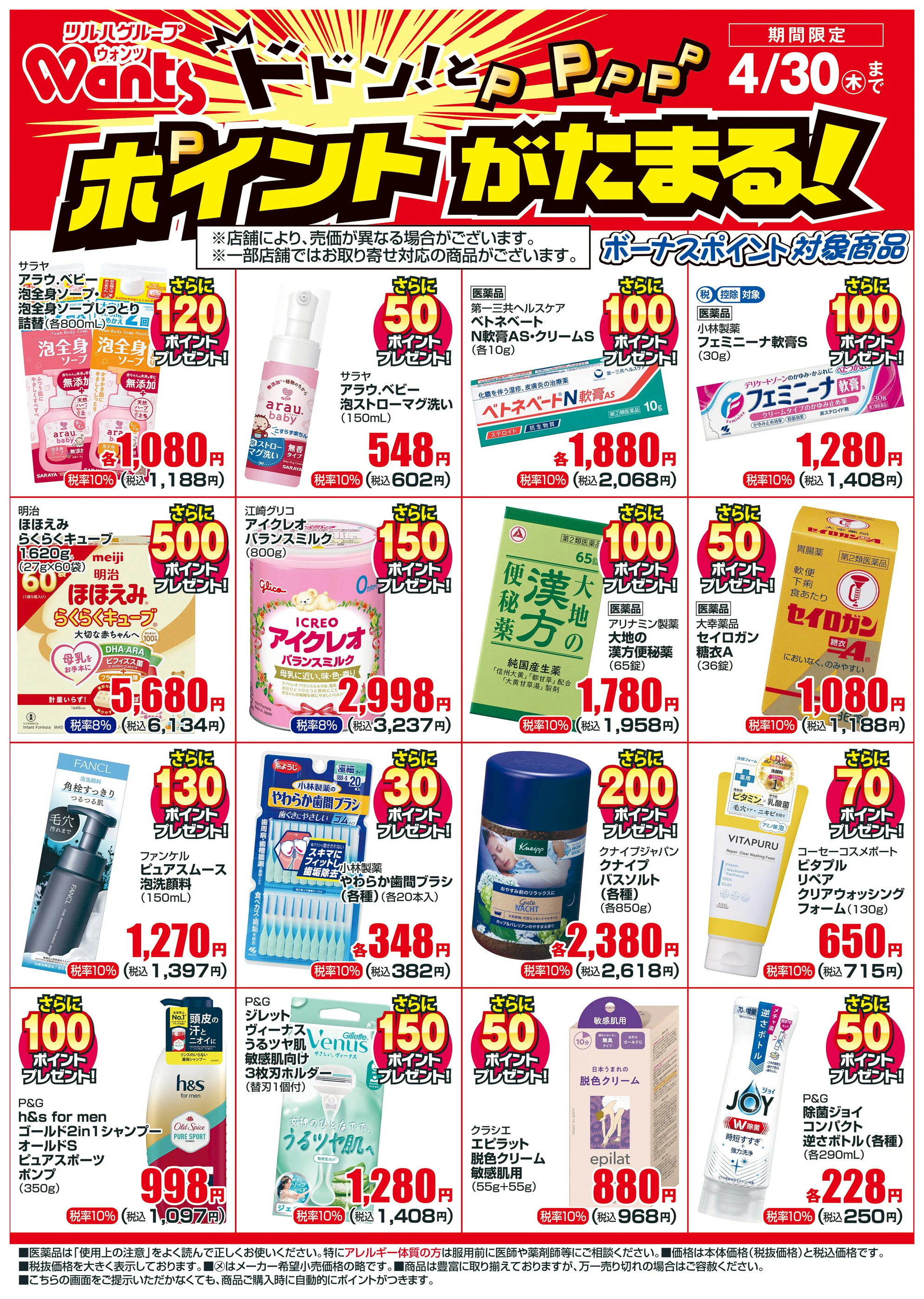 - 4/1~4/30 ウォンツボーナスポイントチラシ4月1日~4月30日new (1枚)