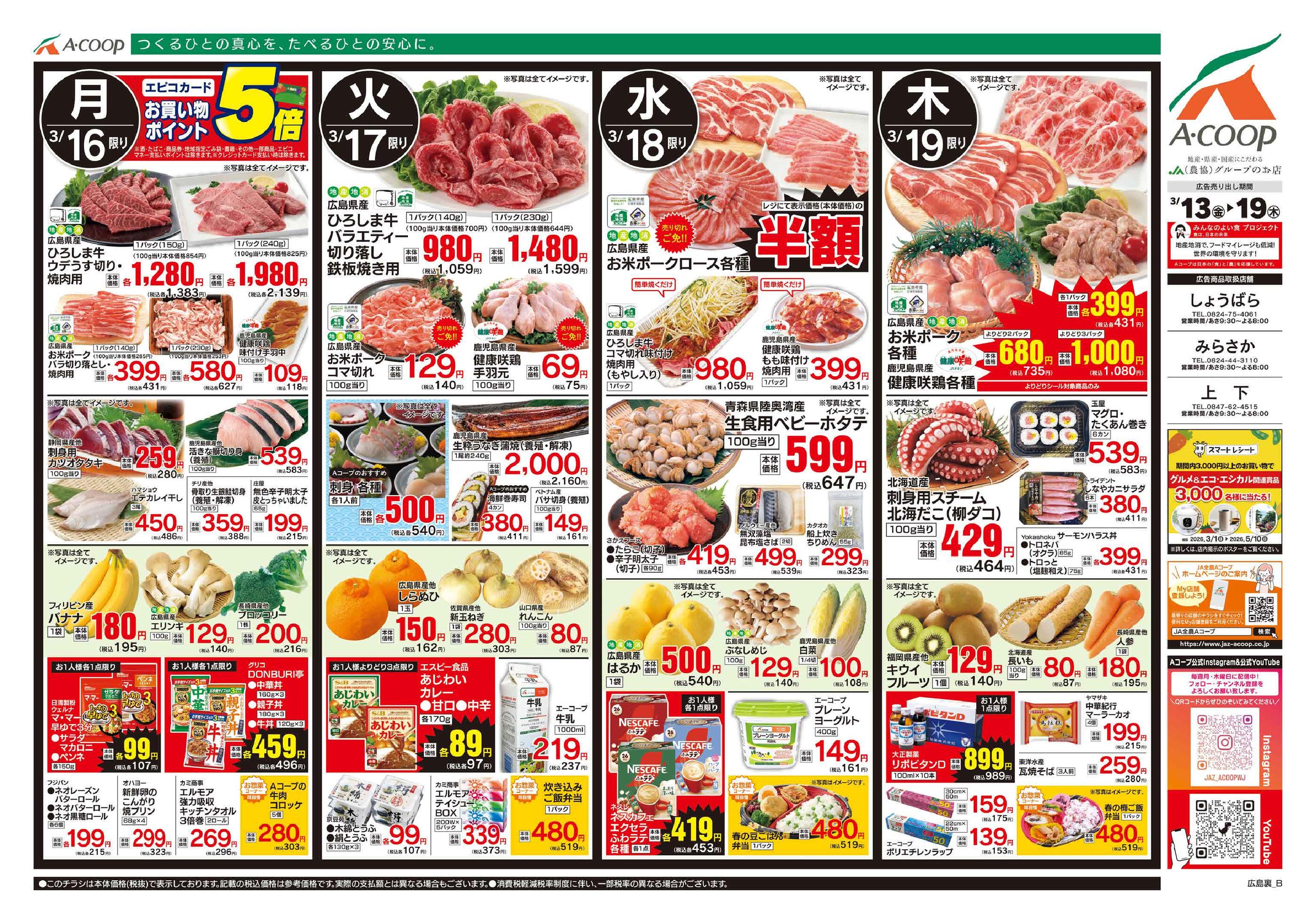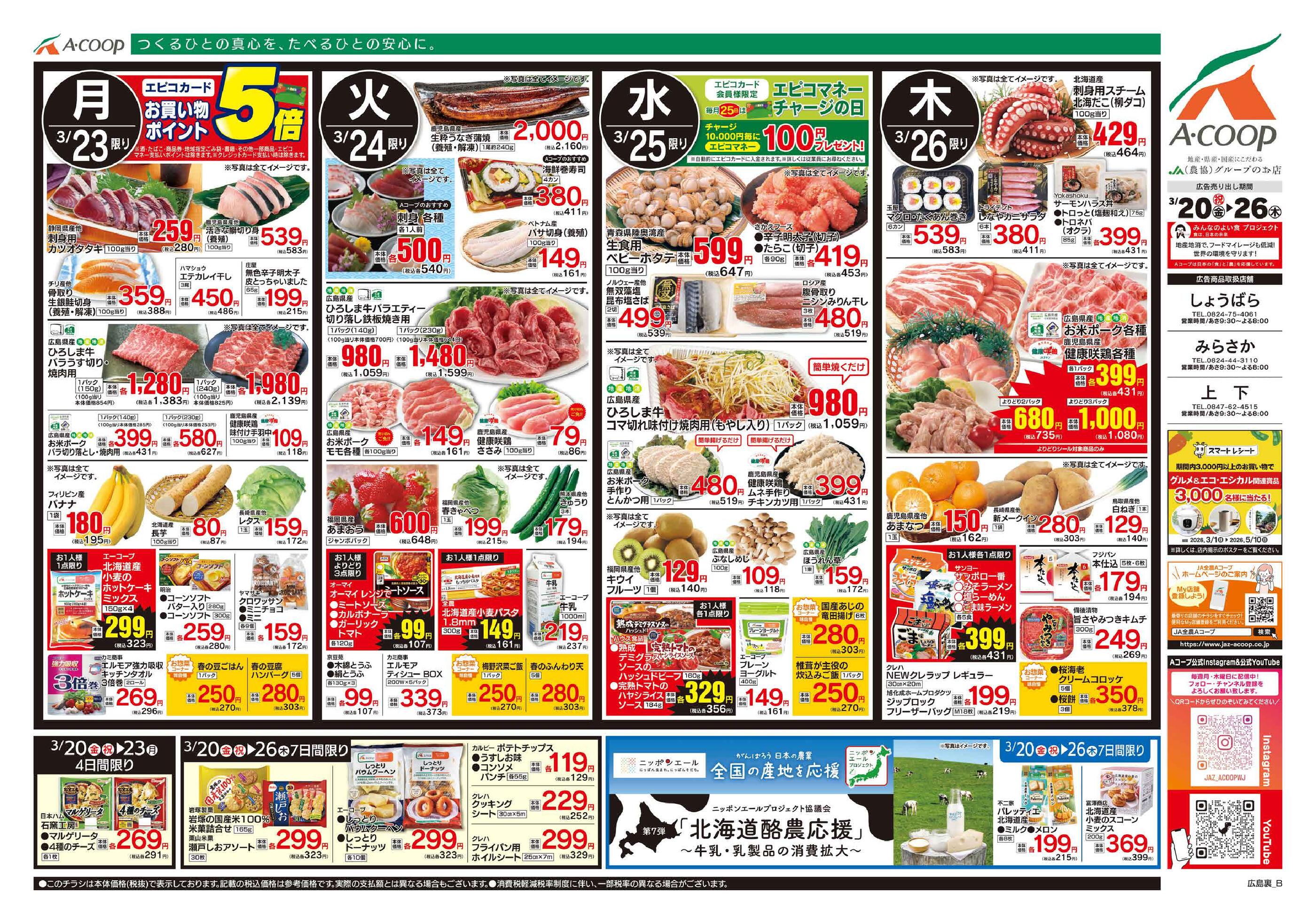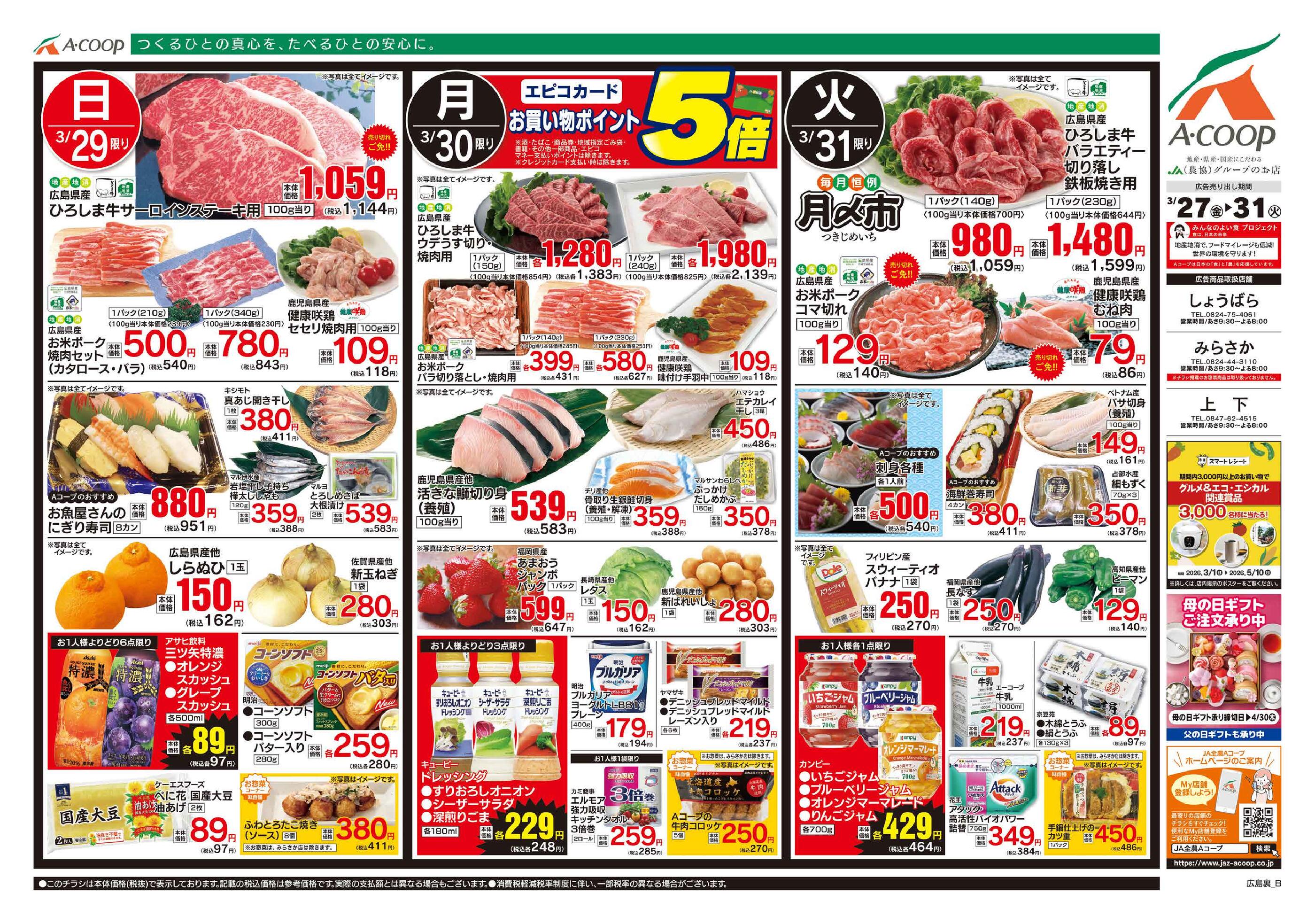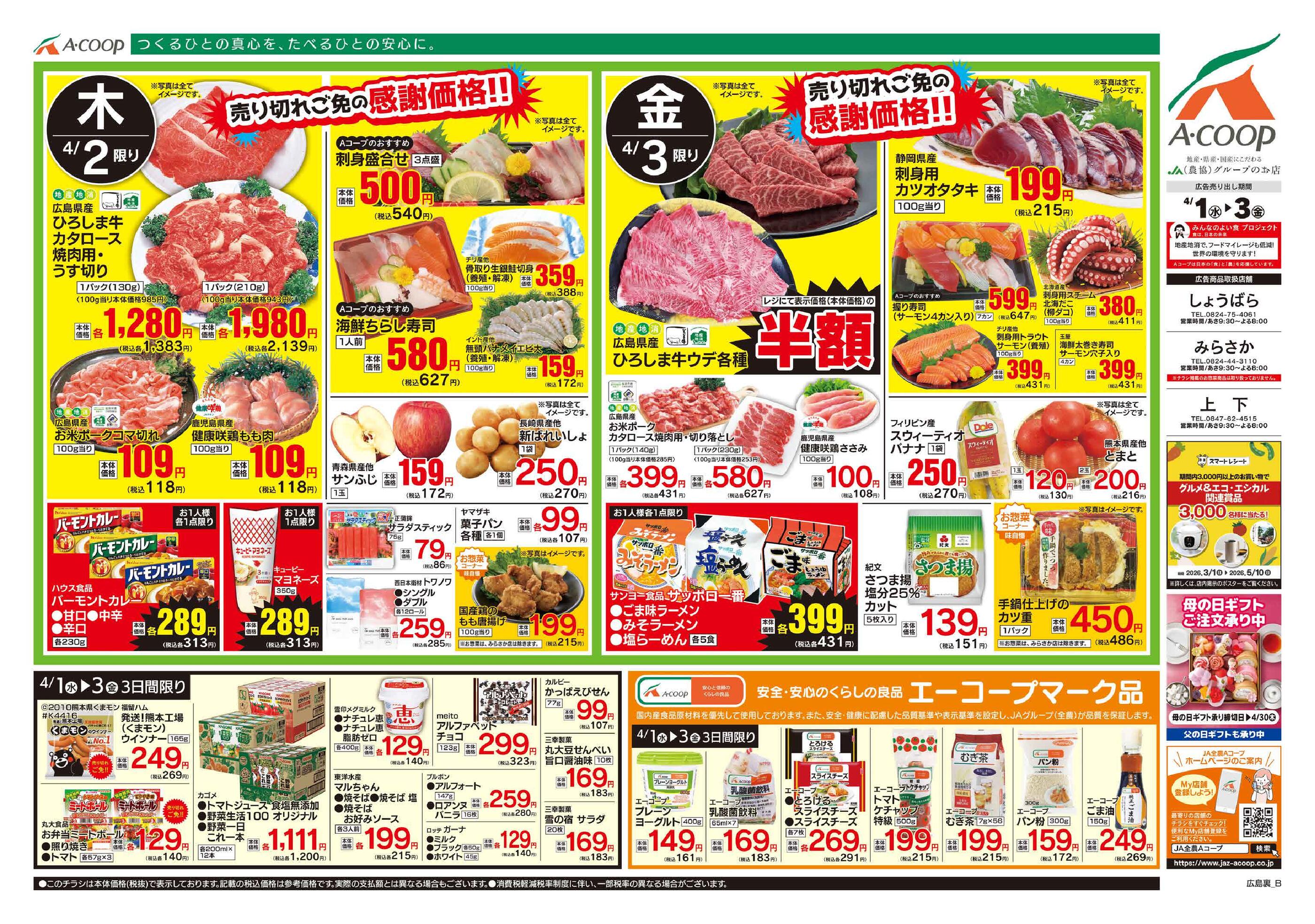 Aコープしょうばら店今週のチラシ(2026年3月30日〜4月5日)