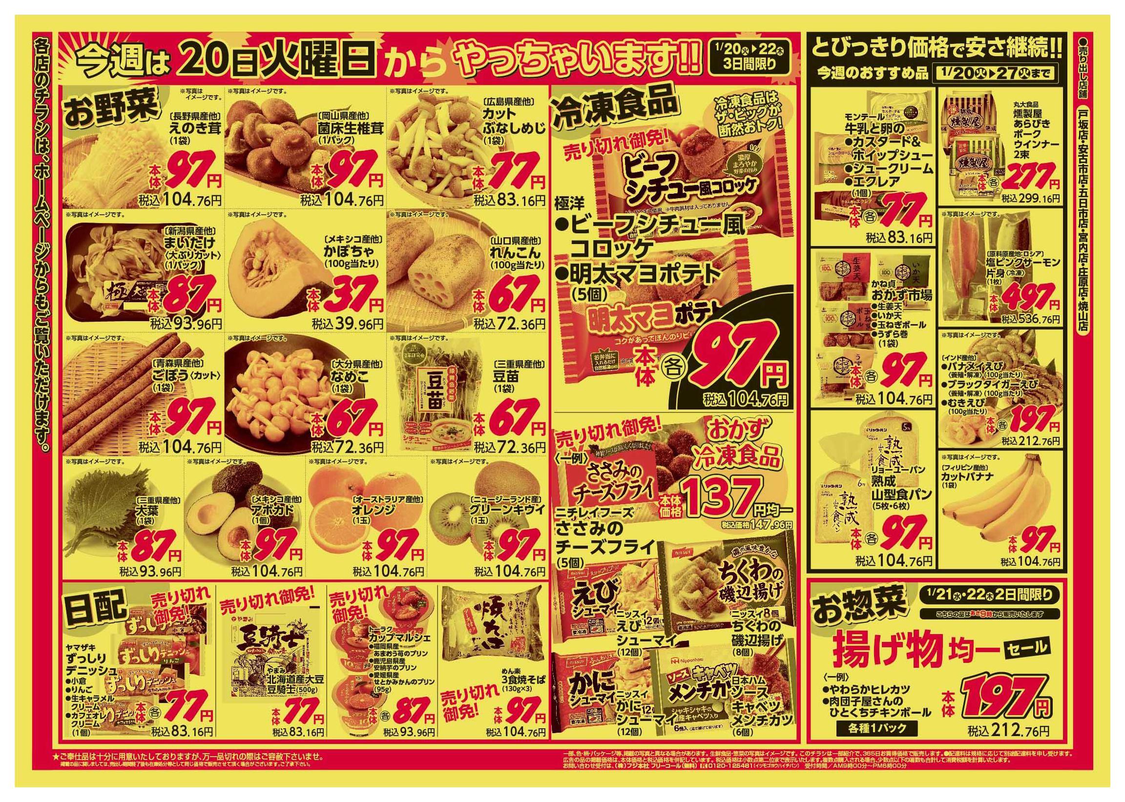 特売やセール情報など最新のチラシを掲載中。(3種類、4枚のチラシを掲載しています)