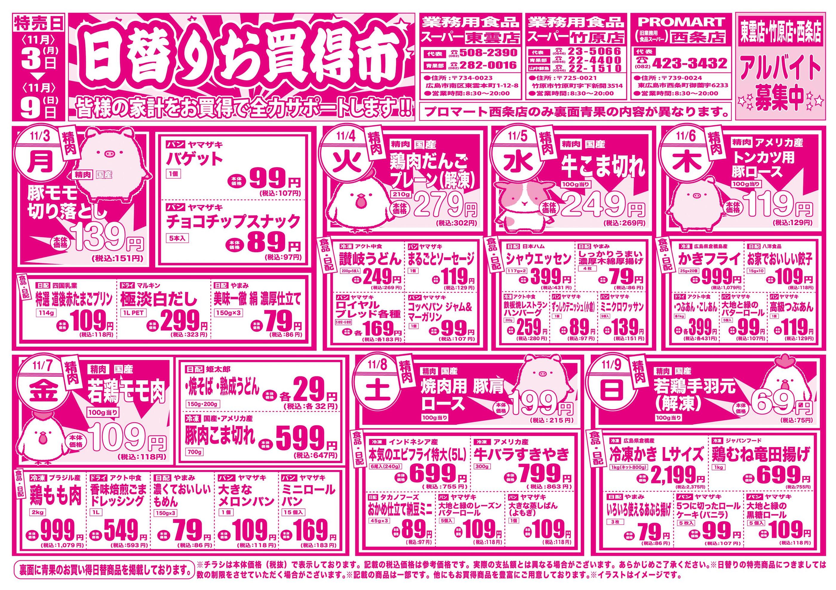 プロマート西条店今週のチラシ(2025年11月10日〜11月16日)