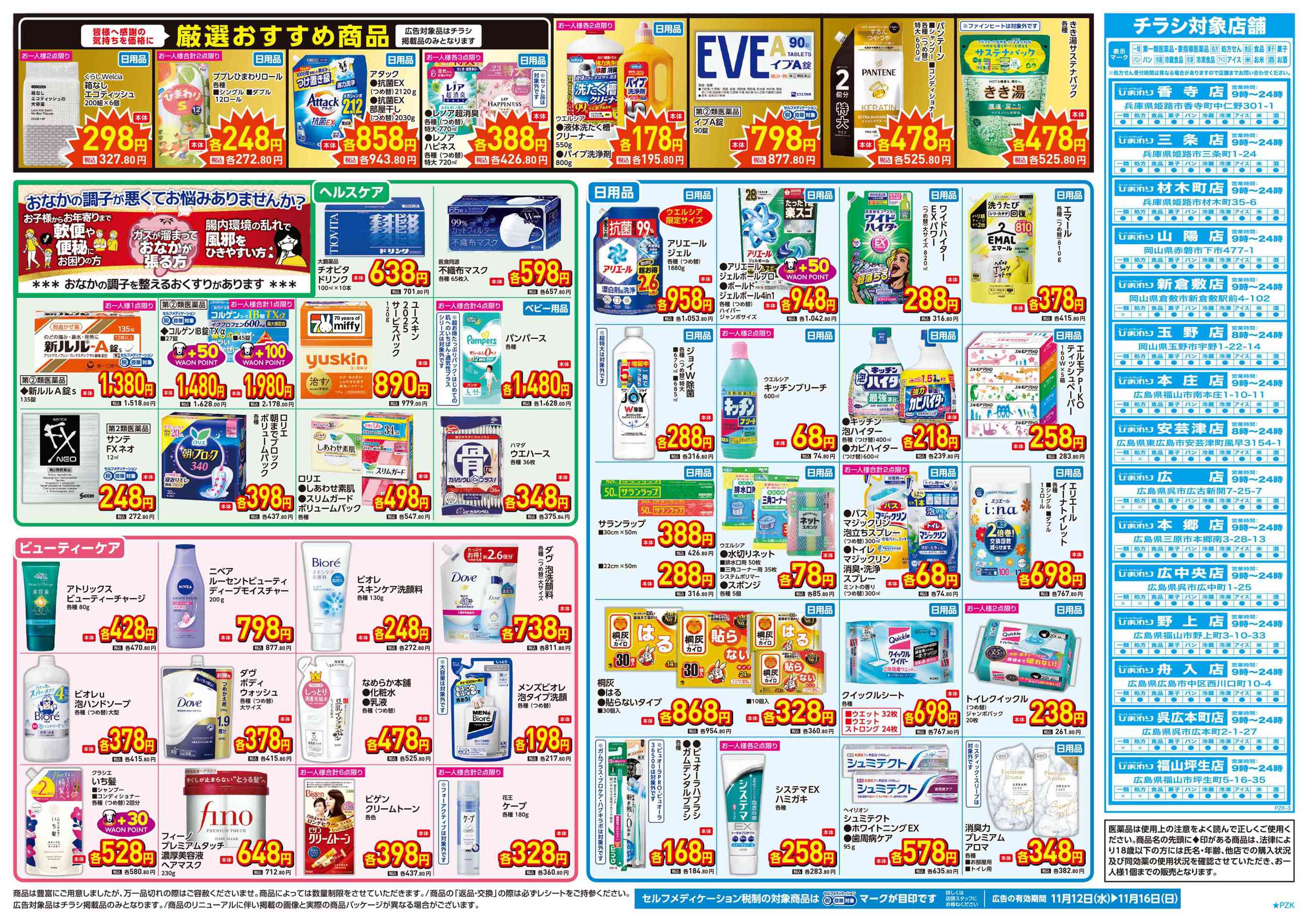 スーパードラッグひまわり福山坪生店今週のチラシ(2025年11月10日〜11月16日)