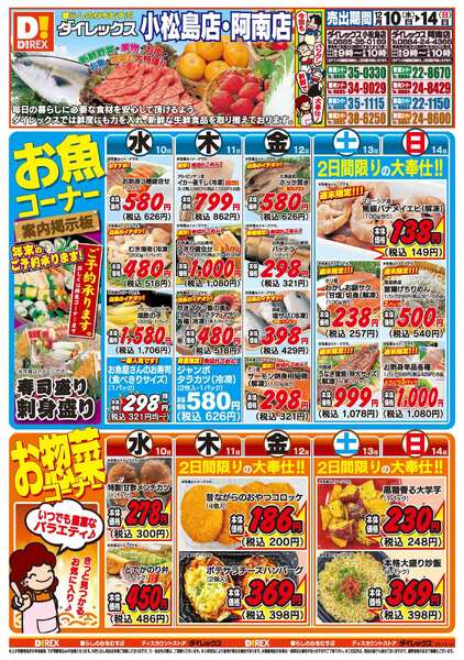 特売やセール情報など最新のチラシを掲載中。(4種類、6枚のチラシを掲載しています)