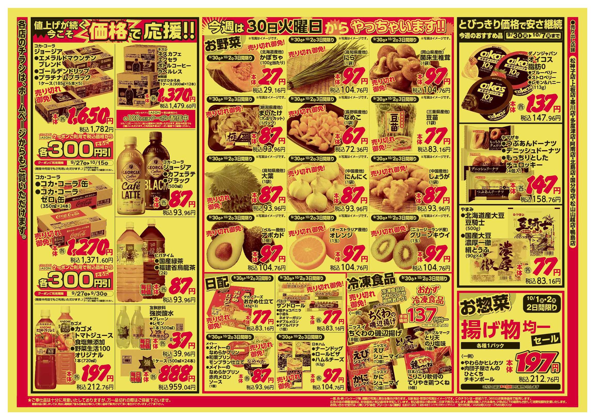 特売やセール情報など最新のチラシを掲載中。(3種類、4枚のチラシを掲載しています)