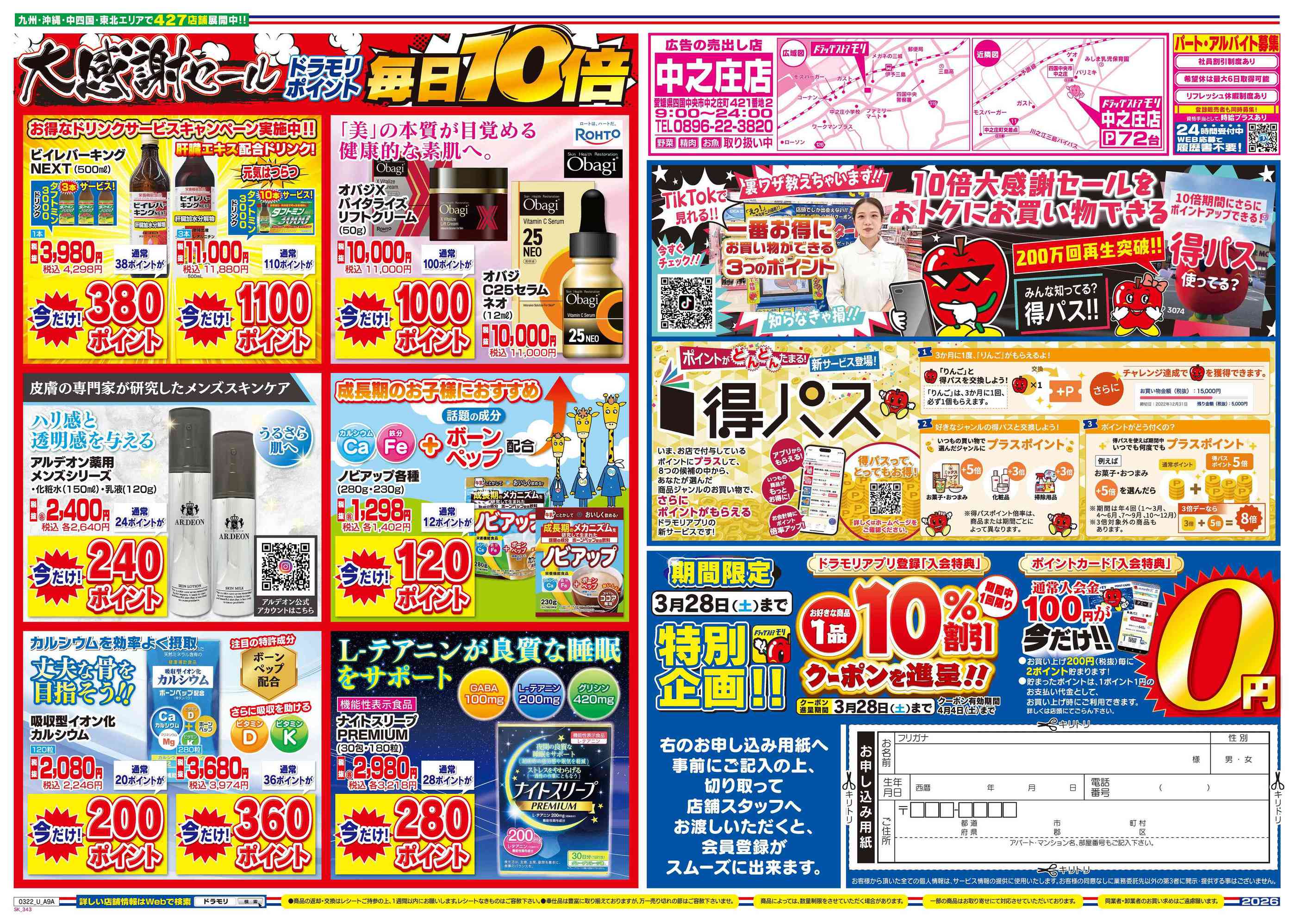 ドラッグストアモリ中之庄店今週のチラシ(2026年3月23日〜3月29日)