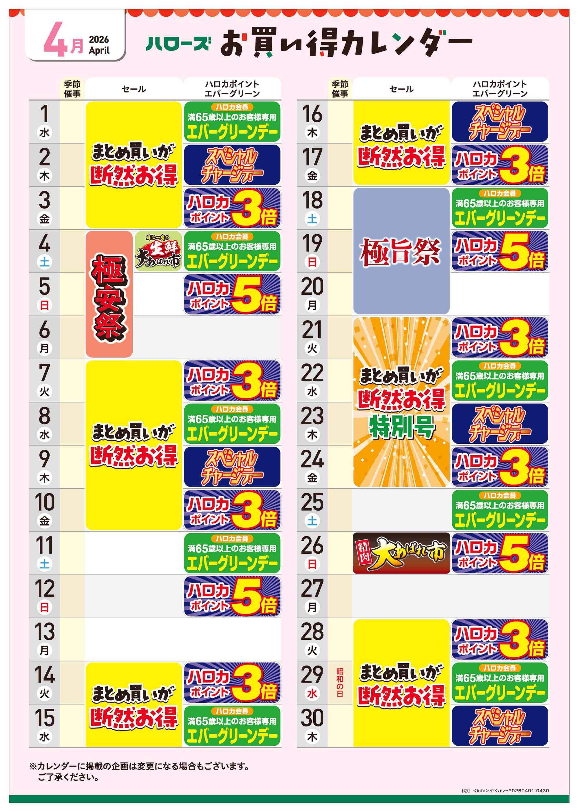 ハローズ土居店今週のチラシ(2026年3月30日〜4月5日)