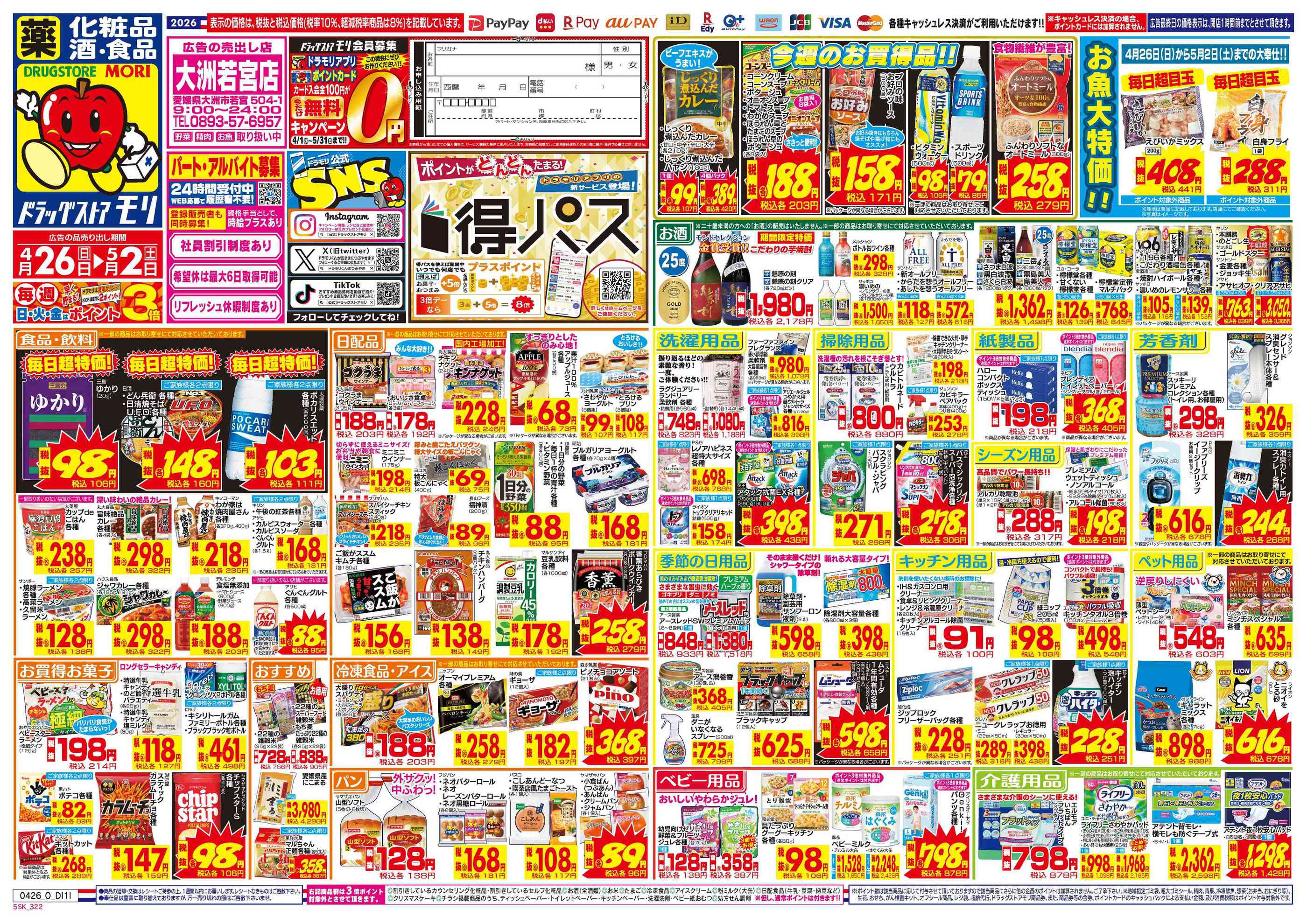ドラッグストアモリ大洲若宮店今週のチラシ(2026年4月27日〜5月3日)