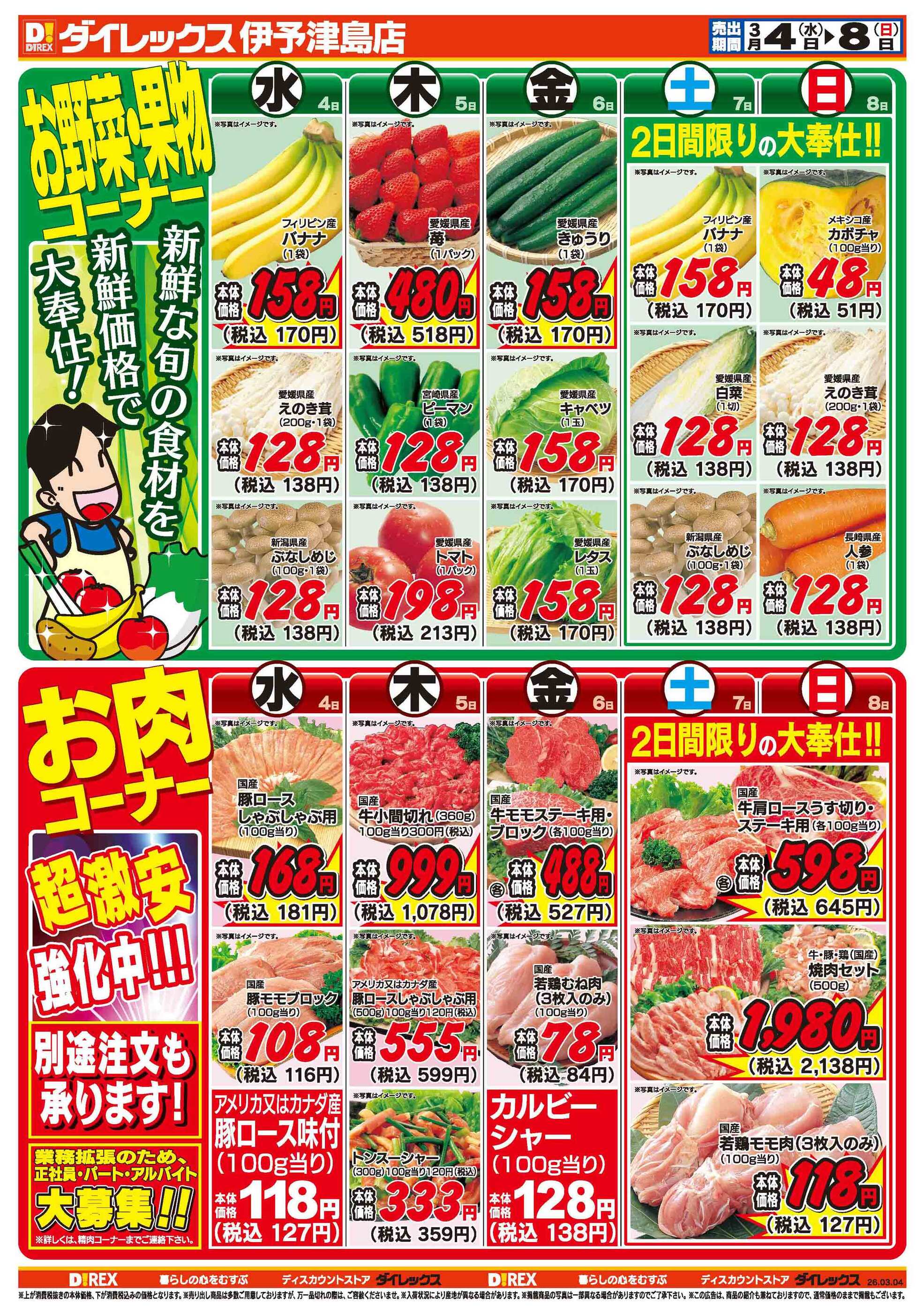 ダイレックス伊予津島店今週のチラシ(2026年3月30日〜4月5日)