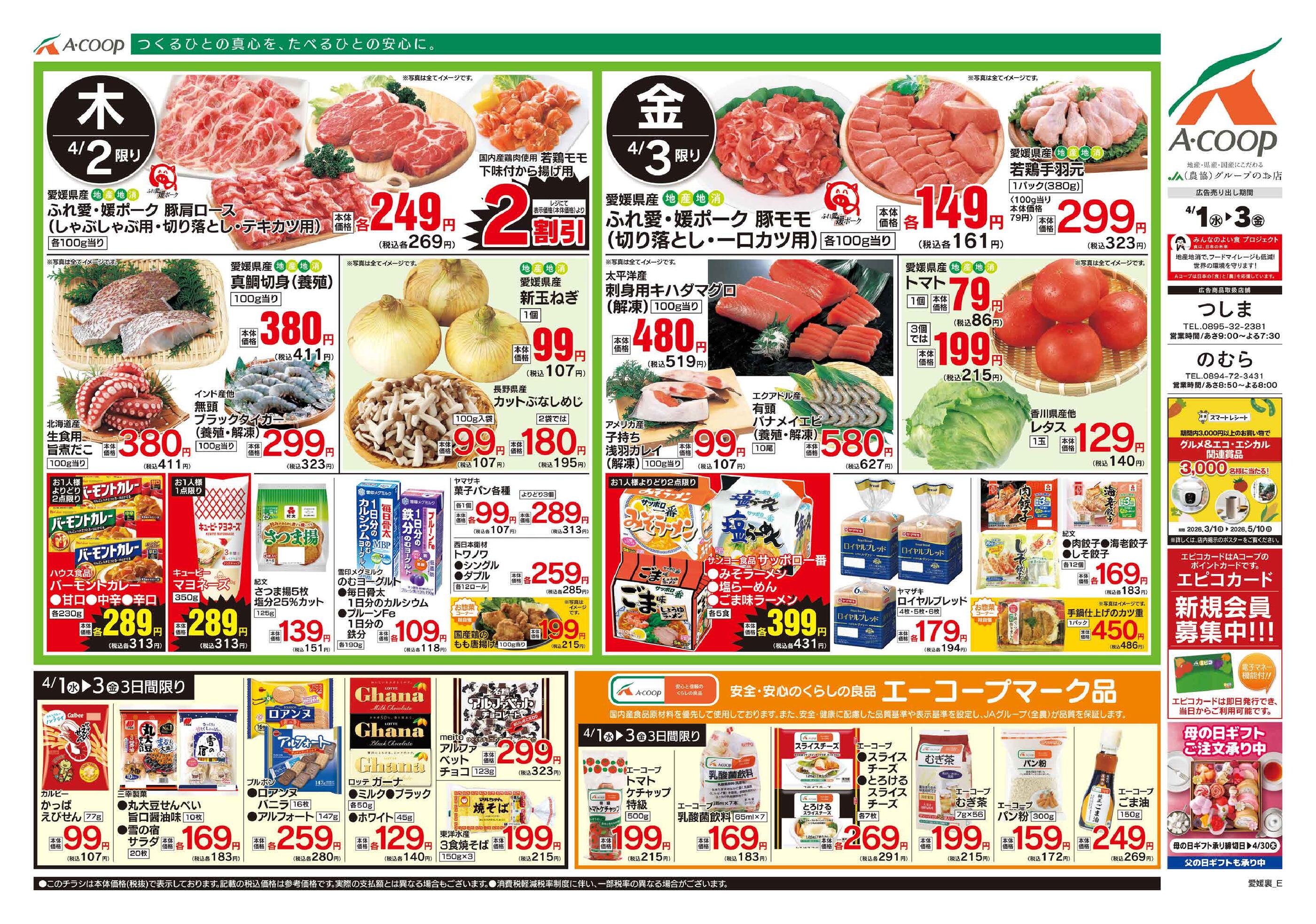 Aコープつしま店今週のチラシ(2026年3月30日〜4月5日)