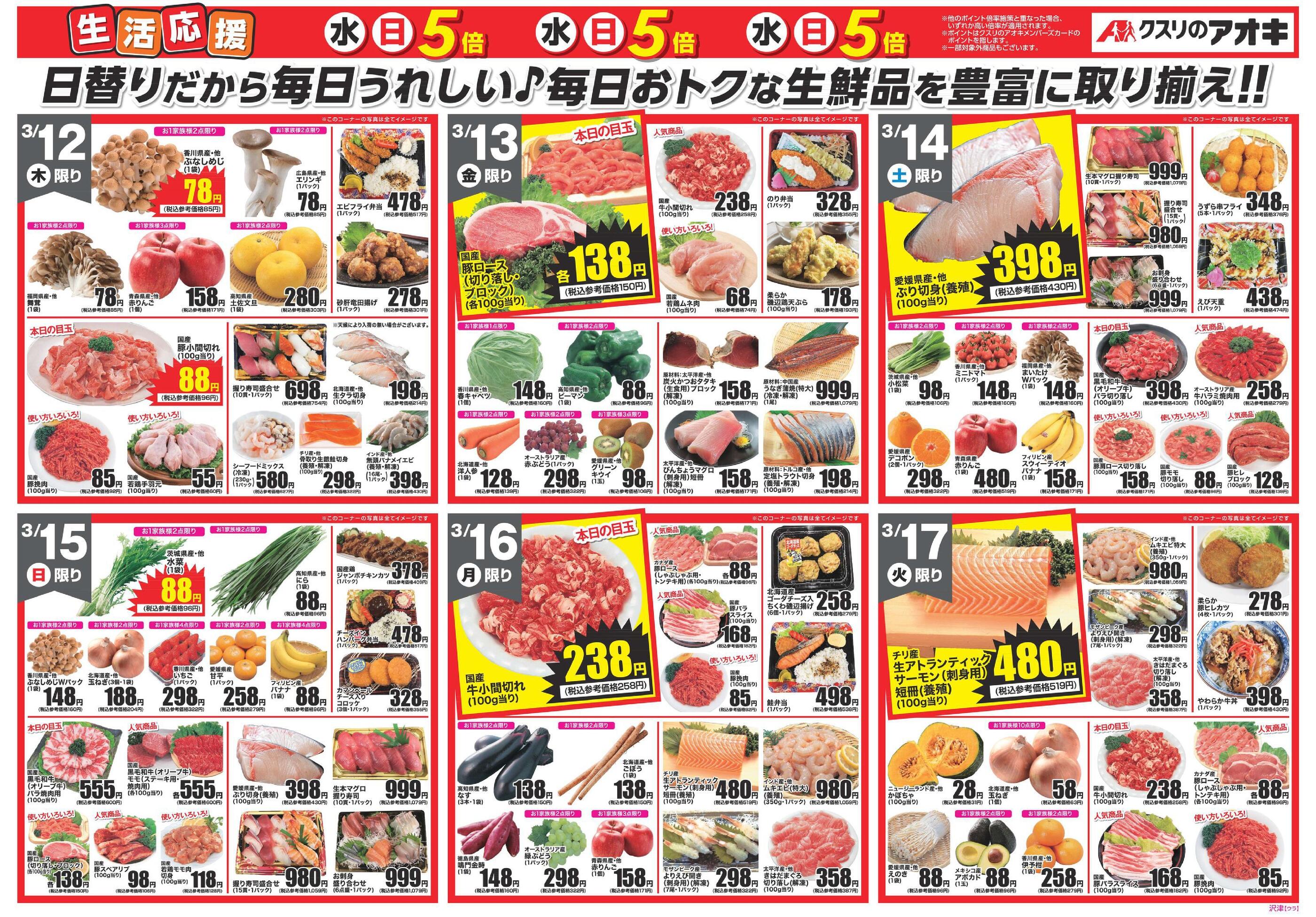クスリのアオキ沢津店今週のチラシ(2026年3月16日〜3月22日)