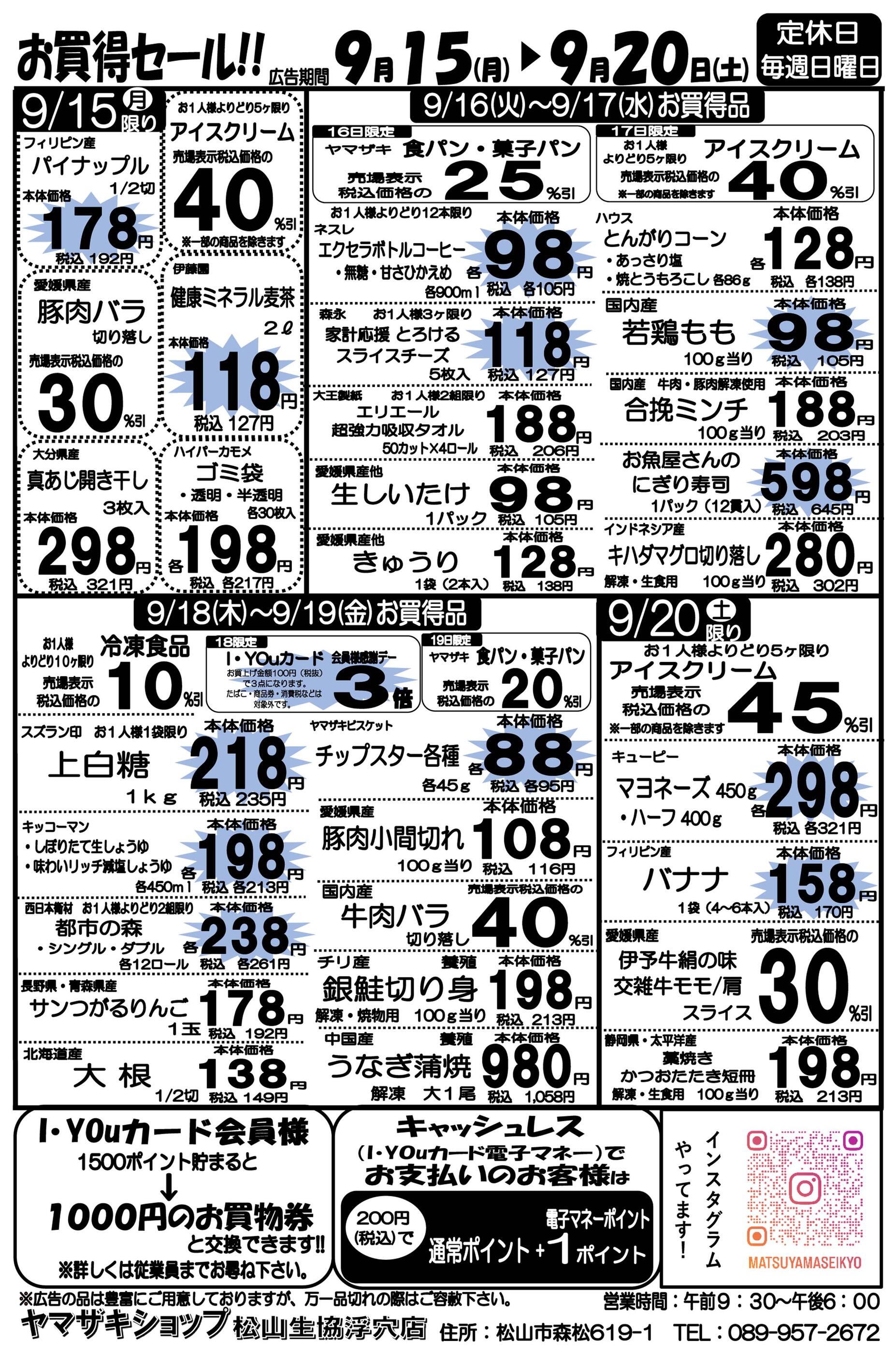 ヤマザキショップ松山生協浮穴店2025-09-29更新