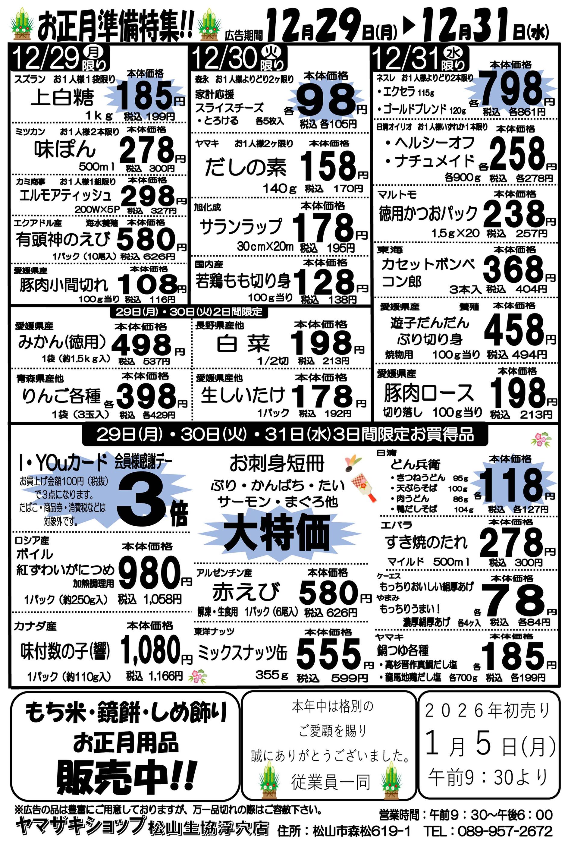 ヤマザキショップ松山生協浮穴店今週のチラシ(2026年1月5日〜1月11日)