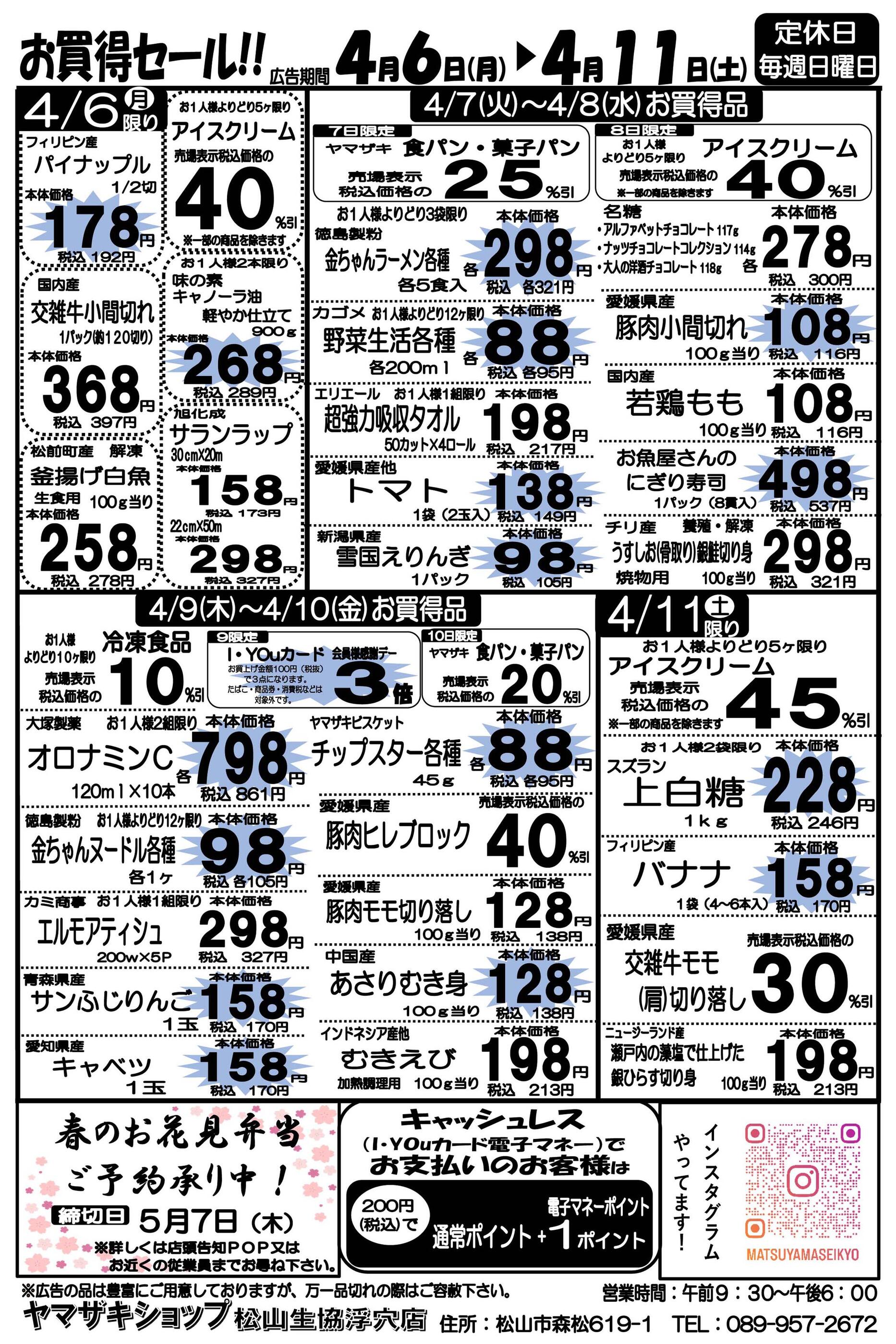 ヤマザキショップ松山生協浮穴店今週のチラシ(2026年4月6日〜4月12日)