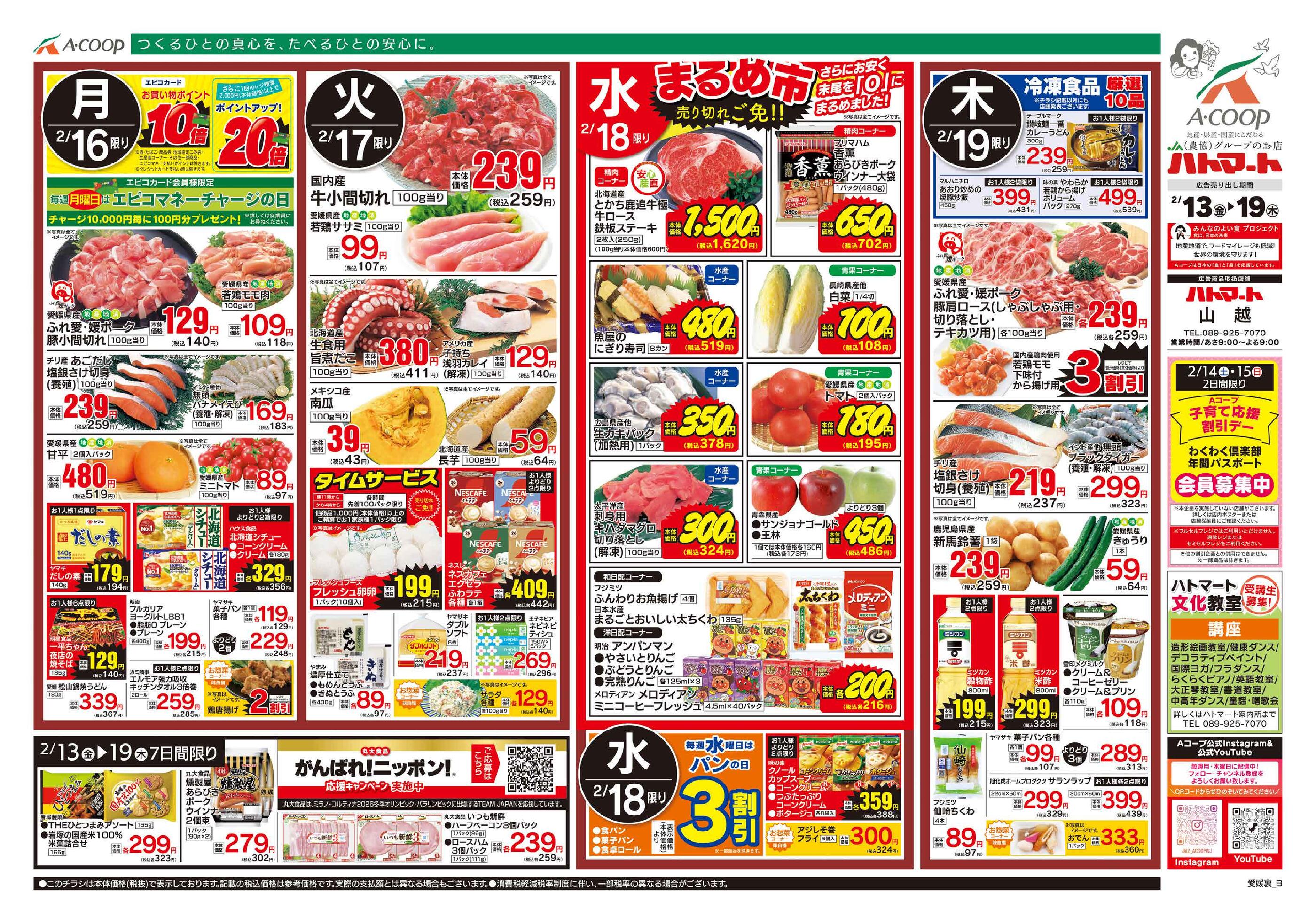 Aコープハトマート山越店今週のチラシ(2026年2月9日〜2月15日)